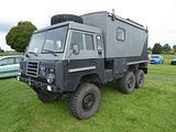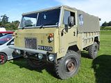 This is a 101 Forward Control, a vehicle produced by Land Rover for the British Army. It was never made available to the public. The vehicle was primarily produced to meet the Army’s requirement for a gun tractor, and was designed to tow a field gun (the L118 Light Gun) with a ton of ammunition and other equipment in the rear load space, giving it the alternative name of the Land Rover One Tonne. The vehicle was designed to be easily transported by air; the positioning of the 3.5 litre Rover V8 engine beneath and to the rear of the cab eliminates the bonnet at the front, making the vehicle more or less cuboid thus reducing unused space in transport aircraft. Of concern was the payload and limited stability, particularly when crossing an incline. The official name of 101 Forward Control is derived from the vehicle’s 101-inch wheelbase, and the position of the driver, above and slightly in front of the front wheels which used a fairly large 9.00 × 16 inch tyre. To cope with the extra height above the ground, the wheels feature an unusual feature for a Land Rover (but used for many years on the much older and similar Mercedes Unimog S404); a flange around the centre of the wheel has an embossed tread pattern forming a step for the crew when entering the cab, named a wheel-step. Development of the 101FC started in 1967, with a design team led by Norman Busby (14 October 1931 – 30 June 2005). Production took place between 1972 and 1978. In common practice of the armed forces, many vehicles were not used for some years and it is not unheard of for military vehicle enthusiasts to pick up these vehicles after only a few thousand miles service. All the vehicles produced at the Land Rover factory at Lode Lane, Solihull were soft top (“rag top”) General Service (GS) gun tractors, although later on many were rebuilt with hard-top ambulance bodies and as radio communication trucks. A rare variant is the electronic warfare Vampire body. It is thought that only 21 of these were produced and less than half of these survive today. One was destroyed in the Buncefield Oil Terminal Fire. The 101FC also served with the RAF Regiment. Two 101s were allocated to each Rapier Missile set up. The British RAF Rapier system used three Land-Rovers in deployment: a 24V winch fitted 101 Firing Unit Tractor (FUT) to tow the launch trailer, loaded with four Rapier missiles, guidance equipment and radio; a 12V winch fitted 101 Tracking Radar Tractor (TRT) to tow the Blindfire Radar trailer, also loaded with four Rapier missiles and guidance equipment; and a 109 Land Rover to tow a reload trailer with 9 Rapier missiles and loaded with the unit’s other supplies and kit. The 101FC also served in an ambulance role, with ambulance bodywork built by Marshall of Cambridge. The 101FC was manufactured in both left and right hand drive with either 12 or 24 volt electrical systems. Some 101FCs were produced with a PTO powered Nokken capstan winch mounted on the chassis at the centre of the vehicle, allowing winching from either the front or rear. Another variation on a small number of pre-production vehicles was the addition of a trailer with an axle driven from the PTO, creating a 6×6 vehicle, this adaptation was abandoned before full production when it was discovered that the trailer had a propensity to push the vehicle onto its side when driven over rough terrain. By the late 1990s, the 101s were decommissioned by the MoD and were replaced with Defenders and Pinzgauer vehicles. Many 101s have entered into private ownership