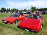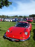 Still seen by many as the most beautiful Ferrari ever built was the 246 GT Dino and this time there was just one example here. The Ferrari Dino was created to honour Alfredo ‘Dino’ Ferrari, Enzo Ferrari’s only legitimate son, who sadly died of muscular dystrophy in 1956. Unlike any previous road-going Ferrari, the Dino utilised a V6 engine, the Tipo 156, which Alfredo himself had helped develop and strongly advocated during his working life. Following continued motor racing success and in order to homologate Ferrari’s 1966 Formula Two campaign, a new line of mid-engined production V6 coupés with Fiat running gear went on sale in 1967 in two litre 206 GT form. However, in 1969 a larger 2.4 litre Dino was introduced, named the 246 GT or GTS in the case of the Spider. Only 3,913 definitive Dinos were built before the introduction of the completely restyled V8 engined 308 in 1973. The voluptuous bodywork of the 246, which many regard as the prettiest ever to grace a road-going Ferrari, was designed by Pininfarina and built by Scaglietti. It clothed a tubular chassis which carried wishbone independent suspension at each corner. The compact four-cam, 190bhp. engine was mounted transversely above the five-speed gearbox and just ahead of the rear axle, allowing for both a comfortable cockpit and some usable boot space
