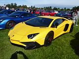 The Aventador has been a huge success for Lamborghini. It was first seen at the 2011 Geneva Show, with the full name of Aventador LP700-4 Coupe, the numbers denoting the output of 700 bhp from the all-new V12 engine and the 4 meaning four wheel drive, something which has featured on every Aventador since. The launch price was £250,000 but even so within a month, Lamborghini had a year’s worth of orders, and within a year, 1000 had been built. In November 2012 a Roadster version arrived, which was very similar to the Coupe, but with a lift-out roof panel. A suite of mechanical changes came at this point, with a cylinder deactiviation technology helping to improve fuel consumption and cut emissions. To mark half a century of car production, in April 2013, the LP720-4 50th Anniversary was launched, with 100 units available. As well as the extra 20 bhp, these had a mildly redesigned nose and tail, special paintwork and unique interior trim. A Roadster version followed in December 2014, the LP 700-4 Pirelli Edition. This did not have the extra power, but did feature two tone paint, unique wheels and a transparent engine cover, with the engine bay finished in carbon fibre. Lamborghini turned up the wick in march 2015 with the LP750-4 SuperVeloce, or SV for short, which featured and extra 50 bhp and a 50 kg weight reduction largely thanks to the use of more carbon fibre. A Roadster version followed a few months later.