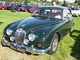 One of the most loved Jaguars of all time, both when it was new, and still now, is the Mark 2 saloon. Many will tell you that it is not the 3 Series BMW that “invented” the “compact sports saloon” car class, but this model, which dates back to 1959. A thorough revision of the small Jaguar saloon that had joined the range in 1955, the Mark 2 was notable in that it was the first car to use the Arabic numeral in its name, as opposed to the Roman numerals of the larger Jaguar models. At launch, the earlier model which had hitherto been known by its engine size was christened the Mark 1. Although clearly based on that car, the updated car looked significantly different, with an increase of 18% in cabin glass area greatly improving visibility. The car was re-engineered above the waistline. Slender front pillars allowed a wider windscreen and the rear window almost wrapped around to the enlarged side windows now with the familiar Jaguar D-shape above the back door and fully chromed frames for all the side windows. The radiator grille was amended and larger side, tail and fog lamps repositioned. Inside a new heating system was fitted and ducted to the rear compartment (although still notoriously ineffective). There was an improved instrument layout that became standard for all Jaguar cars until the XJ Series II of 1973. As well as the familiar 2.4 and 3.4 litre engines, what made this car particularly special was that it was also offered with the potent 220 bhp 3.8 litre unit that was fitted to the XK150 and which would later see service in the E Type. This gave the car a 0 – 60 time of around 8.5 seconds and a top speed of 125 mph. No wonder that the Mark 2 became popular as a get-away car for the criminal fraternity, and to keep up with and catch them, many police forces bought the car as well. With revised suspension and standard four wheel disc brakes, the car was effective on the track, taking plenty of class wins when new, and it is still popular in historic racing circles today. The quickest and most successful private entries came from John Coombs, a man with significant race experience who operated a large Jaguar dealership in Guildford. Coombs would undertake modifications to meet the demands of his customers, so not all the cars that he worked on are the same. Jaguar replaced the Mark 2 with simplified and slightly more cheaply finished 240 and 340 models, as an interim measure until an all-new model was ready to take over from them. The 3.8 litre disappeared from the range at this time, but in the 7 years it had been in production, it had been the best seller of the range, with around 30,000 cars produced, as compared to 28,666 of the 3.4 litre and 25,741 of the 2.4 litre model