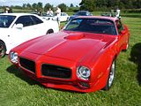 The debut of the second-generation Firebird, for the 1970 model year was delayed until February 26, 1970, because of tooling and engineering problems; thus, its popular designation as a 1970½ model, while leftover 1969s were listed in early Pontiac literature without a model-year identification. This generation of Firebirds were available in coupe form only; after the 1969 model year, convertibles were not available until 1989. Replacing the “Coke bottle” styling was a more “swoopy” body style, while still retaining some traditional elements. The top of the rear window line going almost straight down to the lip of the trunk lid, a look that was to epitomise F-body styling for the longest period during the Firebird’s lifetime. The new design was initially characterized by a large B-pillar, until 1975 when the rear window was enlarged. There were two Ram Air 400 cu in (6.6 L) engines for 1970: the 335 hp L74 Ram Air 400 (366 hp in GTO) and the 345 hp LS1 Ram Air IV (370 hp in the GTO) that were carried over from 1969. The difference between the GTO and Firebird engines was that the secondary carburettor’s throttle linkage had a restrictor which prevented the rear barrels from opening completely, adjusting the linkage could allow full carburetor operation resulting in identical engine performance. For the 1970 and 1971 model years, all Firebirds equipped with radios had the antennae mounted “in-glass” in the windshield. The Pontiac 455 cu in (7.5 L) engine first became available in the second generation Firebird in 1971. The 455 engine was available in the L75 325 hp version and the LS5 335 hp HO version, which was the standard, and only engine option, for the Trans Am. The HO engine also included Ram Air IV. During a 1972 strike, the Firebird (and the similar F-body Camaro) were nearly dropped. Again the 455 HO was the only engine available for the Trans Am. Starting in 1972, and continuing until 1977, the Firebird was only produced at the Norwood, Ohio, facility. In 1973, the Trans Am added two new colors to the Cameo White, Buccaneer Red and Brewster Green. Of the colours, the Buccaneer Red cars seemed to be very popular with the public. Other exterior upgrades included the updated more modern nose bird and the new, soon to be iconic, hood bird option was the “RPO WW7 Hood Decal”, which was a $55 option exclusive to Trans Am. The “Trans Am” decals were a bit larger than previous versions, and shared the same accent colour schemes as the hood bird. Inside the 1973, Trans Am the standard interior equipment was almost the same as prior years. The new “Horse Collar” optional custom interior featured new seat coverings and door panels. The custom interior is well liked by the public as sporty and luxurious. Interior colours were limited to Black, White, Burgundy and Saddle but interestingly you could special order orange, red and blue carpet to any of the interiors colours. The 1973 Trans Am also had to meet the new safety and emissions requirements for 1973. There were now extra steel reinforcements in the bumper and core to support the fender. All Pontiac motors now had to be fitted with new EGR system, which delayed the SD-455 Program until late into production year. The 1973 Trans Am engine displaced 455 cubic inches, the base L75 and Super Duty LS2 option. The engines might have offered the same displacement, but that is where the similarity ended. The base 455 produced 40 fewer horsepower than the round port Super Duty 455. Horsepower for the base L75 455 was rated at 250@4000 rpm and 370 lb/ft @2800 rpm. Pontiac removed the H.O. designation from the base engine, and simply decaled the now nonfunctional shaker with “455”. The “all hand assembled” LS2 SD455 engine has so many difference than the base L75 that it would take up multiple paragraphs, so there are multiple page articles dedicated to these changes. Horsepower for the specially ordered LS2 SD-455 was rated at 290@4000 rpm and 395 lb/ft @3600 rpm. Pontiac engineer’s shaker decal was called the “SD-455.” The 1973 Trans Am introduced “Radial Tuned Suspension” to the automotive world. When ordered, it included the 15” radial tires. Radial Tuned Suspensions with radial tires delivered a much more comfortable ride, while providing outstanding cornering grip. Radial tires where just coming onto the market and Pontiac’s Engineering department fully utilized the RTS option on future Trans Am. The 1973 Trans Am production was up over previous years, the L75 455 production had 3130 Automatics and 1420 Manuals. The Special Ordered $550 Option LS2 SD-455 production had 180 Automatics and 72 Manuals. The 1973 Trans Am has been consider by many as a pinnacle Trans Am offering SD power, great colour combinations, better that ever handling, refined exterior and interior styling and of course that outrageous hood bird. In 1973 and 1974, a special version of the 455, called the “Super Duty 455” (SD-455), was offered. The SD-455 consisted of a strengthened cylinder block that included four-bolt main bearings and added material in various locations for improved strength. Original plans called for a forged crankshaft, although actual production SD455s received nodular iron crankshafts with minor enhancements. Forged rods and forged aluminum pistons were specified, as were unique high-flow cylinder heads. The 480737 code cam (identical grind to the RAIV “041” cam) was originally specified for the SD455 engine and was fitted into the “pre-production” test cars (source: former Pontiac special projects engineer McCully), one of which was tested by both Hot Rod and Car and Driver magazines. However, actual production cars were fitted with the milder 493323 cam and 1.5:1 rocker ratios, due to the ever-tightening emissions standards of the era. This cam and rocker combination, combined with a low compression ratio of 8.4:1 advertised (7.9:1 actual) yielded 290 SAE net horsepower. Production SD4