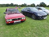 Undoubted star of the morning for me was Justin Eacock’s fabulous S4 Stradale. Between October 1985 and 1986 Lancia, in keeping with Group B racing regulations, was to have built 200 of a road-going version of the Delta S4, officially named Lancia Delta S4 but widely known as “Stradale”, for the purpose of homologation in Group B, but it is more likely that fewer than 100 were actually built. In Italy, the car was priced at about 100 million Lira: five times the price of the most expensive Delta of the time, the HF Turbo. The Stradale’s chassis was a space frame, similar to its rally counterpart, built out of CrMo steel tubes and aluminium alloy for the crash structures; it was covered by epoxy and fibreglass body panels. Like the rally car, the 1.8-litre four-cylinder engine was longitudinally mid-mounted, equipped with Weber-Marelli IAW integrated electronic ignition and fuel injection, a supercharger, a turbocharger and two intercoolers. In road tune the 1.8 produced 250 PS (247 bhp] at 6750 rpm and 291 Nm (215 lb/ft) of torque at 4500 rpm. The “Stradale” kept a three differential four-wheel-drive system from the rally car; the centre differential sent 30% of the engine torque to the front open differential, and 70% to the rear limited slip. The transmission remained a 5-speed but was a fully-synchronized unit built by CIMA. Lancia claimed the car could reach a top speed of 225 km/h (140 mph) and accelerate from standstill to 100 km/h (62 mph) in 6.0 seconds. In contrast to its bare bones racing sister, the S4 Stradale featured an Alcantara-upholstered interior, sound deadening, a suede steering wheel, and was equipped with power steering, trip computer and air conditioning. While racing versions were built by Abarth, the Stradales were built by Torinese coachbuilders Savio