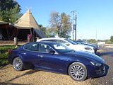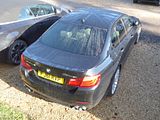 The Alpina B5 and D5 (F10) (also called the B5/D5 Bi-Turbo) are a series of high performance executive cars manufactured by German automobile manufacturer Alpina from 2011 to 2016. Introduced at the 2010 Goodwood Festival of Speed, the car is the second generation of the B5 and succeeds the B5 (E60). Based on the BMW 5 Series (F10), the car was available in saloon and wagon bodystyles. The B5 is based on the 550i and uses a modified variant of its 4.4-litre twin-turbocharged N63 V8 engine. The modifications include large 44 mm (2 in) Honeywell turbochargers, reinforced cylinder heads, NGK spark plugs, high strength MAHLE pistons and an Alpina specific ECU. The maximum boost pressure of the turbochargers is increased to 14.5 psi. These modifications allow the engine to generate a power output of 507 PS (500 bhp) at 5,500 rpm and 700 Nm (516 lb/ft) of torque. The same engine is also shared with the B7 and the B6 convertible. The engine is mated to a modified 8-speed automatic transmission manufactured by ZF Friedrichshafen called the “Switch Tronic” gearbox by Alpina. The transmission has a manual shifting mode which allows the driver to change gears using two aluminium buttons on the back of the steering wheel. The engine and transmission in conjunction allow the B5 to achieve a fuel economy of 10.8 litres/100 km. The B5 came with a softer suspension system which has shorter springs and modified dampers along with suspension arms. The dampers are electronically adjustable and have four settings namely Normal, Comfort, Sport and Sport +. The car has 20-inch multi-spoke alloy wheels with Michelin Pilot Sport tyres having sizes of 255/35ZR20 at the front and 285/30ZR20 at the rear. The steering system of the 550i was also modified in order for smoother handling and elimination of under and oversteer. The exhaust system, shared with the B6, is a titanium unit from Akrapovic with quad-exhaust tips and electronically controlled bypass valves. The B5 has an aerodynamic kit that includes a carbon-fibre front spoiler with an integrated front splitter along with an integrated NACA brake cooling duct, a rear lip spoiler and an optional rear diffuser. The car has Lavalina leather interior upholstery and myrtle wood trim as standard. The interior has Alpina logos and emblems throughout along with illuminated door sills, a panoramic roof, Alpina gauges, BMW driver assistance including active blind spot detection and a sports steering wheel. Manufacturer estimated performance figures include a 0–100 km/h (0–62 mph) acceleration time of 4.7 seconds (4.8 seconds for the wagon) and a top speed of 307 km/h (191 mph) (303 km/h (188 mph) for the wagon). The B5 was updated in 2012 and was now based on the LCI 550i. The updated variant was unveiled at the 2012 Geneva Motor Show. The engine was modified and has a power output of 540 PS (533 bhp) between 5,200 and 6,250 rpm and 733 Nm (541 lb/ft) of torque at 2,800 rpm. A notable feature of the engine was the use of direct fuel injection which reduced gear shift timing to 180 milliseconds. Other components, such as the aero kit and the transmission were un-altered. The modifications to the engine allowed the B5 to accelerate to 100 km/h (62 mph) in of 4.5 seconds (4.6 seconds for the wagon) and a top speed of 319 km/h (198 mph) (315 km/h (196 mph) for the wagon). The B5 was updated again in 2016 and now shared the same enhancements as the B5 Edition 50 (described below) resulting to the same performance as the limited edition model. The D5 is the diesel powered variant of the B5. Based on the 535d, the D5 uses a modified variant of the 3.0-litre turbodiesel N57 straight-6 engine. The engine has a power output of 352 PS (347 bhp) and 700 Nm (516 lb/ft) of torque and has a red-line of 5,000 rpm. The aerodynamic kit, interior and transmission are shared with the B5. The D5 can accelerate to 100 km/h (62 mph) from a standstill in 5.1 seconds and can attain a top speed of 275 km/h (171 mph).