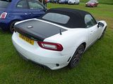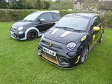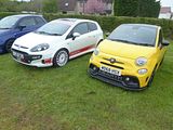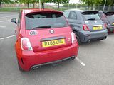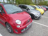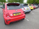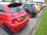 What is known as the Series 4 version of the familiar 595 reached the markets in the middle of 2016. After rumours had circulated all winter following the launch of the facelifted Fiat 500 last year, Abarth finally unveiled the Series 4 at the end of May 2016. Initially, we were told that the cars would not be available in the UK until September, but that came forward somewhat, with dealers all receiving demo cars in June, and the first customers taking delivery in July. Three regular production versions of both the closed car and the open-topped C were initially available, all badged 595, and called Custom, Turismo and Competizione, as before, though numerous limited edition models have since appeared and in most case disappeared. The most significant changes with the Series 4 are visual, with a couple of new colours, including the much asked for Modena Yellow and a different red, called Abarth Red, which replaces both the non-metallic Officina and – slightly surprisingly – the tri-coat pearlescent Cordolo Red. as well as styling changes front and rear. The jury is still out on these, with many, me included, remaining to be convinced. At the front, the new air intake does apparently allow around 15 – 20 % more air in and out, which will be welcome, as these cars do generate quite a lot of heat under the bonnet. Competizione models for the UK retain the old style headlights, as they have Xenon lights as standard, whereas the Custom and Turismo cars have reshaped units. At the back, there are new light clusters and a new rear bumper and diffuser. Inside, the most notable change is the replacement of the Blue & Me system with a more modern uConnect Audio set up, which brings a new colour screen to the dash. Mechanically, there is an additional 5 bhp on the Custom (now 145) and Turismo (now 165 bhp) and the option of a Limited Slip Diff for the Competizione, which is likely to prove a popular option. Details of the interior trim have changed, with a filled-in glovebox like the US market cars have always had, and electric windows switches that are like the US ones, as well as a part Alcantara trim to the steering wheel in Competizione cars. These cars have now been on offer for seven years and with Abarth sales on the rise, it was no surprise that they were particularly well represented here.