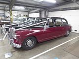 1967 Daimler Majestic DR450: The Daimler DR450 is a limousine variant of the Majestic Major DQ450 saloon. Produced from 1961 to 1968, it was the last complete car designed by The Daimler Company Limited. Intended for the carriage trade, as an executive express or as a hire car for those needing something larger than a five-seater saloon, the DR450 was produced in numbers close to those of the Majestic Major saloon on which it was based. The chassis was 24.0 in (609.6 mm) longer than for the Majestic Major and the necessarily flat glass of the three side-windows no longer could be let flow with the body-shape. The equally flat-windowed but bulbous Jaguar Mark X was released to the market the same year. The 4,561 cc hemi-head engine pushed the 2¼ tonnes of car and driver to 100 km/h in under 11 seconds, to 100 mph in 37 seconds and provided a top speed of 183 km/h (114 mph), rather better than the much shorter lighter 5-passenger Jaguar Mark X. Autocar road testers said “Few cars possess the Jekyll and Hyde personality of the Daimler limousine in providing very high performance, comfort, safety and enormous carrying capacity . . . after enjoying the Daimler for its special merits of high performance and excellent handling, one feels even a little sympathy for chauffeurs who may rarely have the opportunity to discover for themselves the other side of the car’s character.” “It is always a challenge to the engineers to provide a good compromise of ride in a car of which the laden weight can conceivably vary by as much as 14 to 15 cwts 1,568 lb (711 kg) to 1,680 lb (762 kg). The Daimler limousine has achieved a very high standard in this respect”. On test by Autocar average fuel consumption for the total distance of 1404 miles proved to be 14.7 miles per gallon or 19.2 L/100 km. The maximum speed of the car was a (mean) of 113.5 mph, 182.6 km/h and the best run 114 or 183.2 km/h. In October 1961 the car cost £3,995 including tax, as opposed to a Jaguar Mark X at £2,393. There were only three English limousines in production in 1966. The Rolls-Royce Phantom V was available for approximately £10,700, the Daimler DR450 for £3,558 complete (or £1,899 for a bare chassis), and the Vanden Plas Austin Princess for around £3,100.
