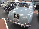 1954 Ford Popular E93A: Ford replaced their first European car with the 7Y in 1938, which following a minor facelift became the Anglia, and there was an example of the here, though I don’t seem to have taken its photo. Production resumed after the war, along with a four door version, the Prefect. When these models were replaced by a much more modern design in 1953, the design lived on in the E103 Popular. It was powered by a Ford Sidevalve 1172 cc, 30 bhp four-cylinder engine, and was very basic. It had a single vacuum-powered wiper, no heater, vinyl trim, and very little chrome; even the bumpers were painted, and the bakelite dash of the Anglia was replaced by a flat steel panel. The Popular 103E differed visually from the Anglia E494E in having smaller headlights and a lack of trim on the side of the bonnet. Early 103Es had the three spoke banjo type Anglia/Prefect steering wheel as stocks of these were used up, but most have a two spoke wheel similar to the 100E wheel but in brown. Early Populars also had the single centrally mounted tail/stop-lamp of the Anglia, but this changed to a two tail/stop lamp set up with the lamps mounted on the mudguards and a separate number plate lamp. This car proved successful because, while on paper it was a sensible alternative to a clean, late-model used car, in practice there were no clean late-model used cars available in postwar Britain owing to the six-year halt in production caused by the Second World War. This problem was compounded by stringent export quotas that made obtaining a new car in the late 1940s and into the early 1950s difficult, and covenants forbidding new-car buyers from selling for up to three years after delivery. Unless the purchaser could pay the extra £100 or so for an Anglia 100E, Austin A30 or Morris Minor, the choice was the Popular or a pre-war car. 155,340 Populars were produced.