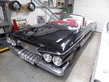 1959 Austin Healey Sprite “Frog Eye”: Known officially as the Sprite, it was announced to the press in Monte Carlo by the British Motor Corporation on 20 May 1958, just before that year’s Monaco Grand Prix. It was intended to be a low-cost model that “a chap could keep in his bike shed”, yet be the successor to the sporting versions of the pre-war Austin Seven. The Sprite was designed by the Donald Healey Motor Company, with production being undertaken at the MG factory at Abingdon. It first went on sale at a price of £669, using a tuned version of the Austin A-Series engine and as many other components from existing cars as possible to keep costs down. It was produced for a little over 3 years before being replaced by a Mark 2 version, which was then joined by a badge-engineered MG version, the Midget, reviving a model name used by MG from the late 1920s through to the mid 1950s. Enthusiasts often refer to Sprites and the later Midgets collectively as “Spridgets.” The first Sprite quickly became affectionately known as the “frogeye” in the UK and the “bugeye” in the US, because its headlights were prominently mounted on top of the bonnet, inboard of the front wings. The car’s designers had intended that the headlights could be retracted, with the lenses facing skyward when not in use; a similar arrangement was used many years later on the Porsche 928. But cost cutting by BMC led to the flip-up mechanism being deleted, therefore the headlights were simply fixed in a permanently upright position, giving the car its most distinctive feature. The body was styled by Gerry Coker, with subsequent alterations by Les Ireland following Coker’s emigration to the US in 1957. The car’s distinctive frontal styling bore a strong resemblance to the defunct American 1951 Crosley Super Sport. The problem of providing a rigid structure to an open-topped sports car was resolved by Barry Bilbie, Healey’s chassis designer, who adapted the idea provided by the Jaguar D-type, with rear suspension forces routed through the bodyshell’s floor pan. The Sprite’s chassis design was the world’s first volume-production sports car to use unitary construction, where the sheet metal body panels (apart from the bonnet) take many of the structural stresses. The original metal gauge (thickness of steel) of the rear structure specified by Bilbie was reduced by the Austin Design Office during prototype build, however during testing at MIRA (Motor Industry Research Association) distortion and deformation of the rear structure occurred and the original specification was reinstated. The two front chassis legs projecting forward from the passenger compartment mean the shell is not a full monocoque. The front sheet-metal assembly, including the bonnet (hood) and wings, was a one-piece unit, hinged from the back, that swung up to allow access to the engine compartment. The 43 bhp, 948 cc OHV engine (coded 9CC) was derived from the Austin A35 and Morris Minor 1000 models, also BMC products, but upgraded with twin 11⁄8 inch SU carburettors which gave it 43 hp at 5200 rpm and 52 lb/ft at 3300 rpm. When tested by “The Motor” magazine in 1958. It had a top speed of 82.9 mph and could accelerate from 0-60 mph in 20.5 seconds. Fuel consumption of 43 mpg was recorded. The rack and pinion steering was derived from the Morris Minor 1000 and the front suspension from the Austin A35. The front suspension was a coil spring and wishbone arrangement, with the arm of the Armstrong lever shock absorber serving as the top suspension link. The rear axle was both located and sprung by quarter-elliptic leaf springs, again with lever-arm shock absorbers and top links. There were no exterior door handles; the driver and passenger were required to reach inside to open the door. There was also no boot lid, owing to the need to retain as much structural integrity as possible, and access to the spare wheel and luggage compartment was achieved by tilting the seat-backs forward and reaching under the rear deck, a process likened to potholing by many owners, but which resulted in a large space available to store soft baggage. The BMC Competition Department entered Austin Healey Sprites in major international races and rallies, their first major success coming when John Sprinzel and Willy Cave won their class on the 1958 Alpine Rally. Private competitors also competed with much success in Sprites. Because of its affordability and practicality, the Austin Healey Sprite was developed into a formidable competition car, assuming many variants by John Sprinzel, Speedwell and WSM. The Sebring Sprite became the most iconic of the racing breed of Austin Healey Sprites. Many owners use their Austin Healey Sprites in competition today, fifty years after its introduction. 48,987 “frogeye” Sprites were made and the car remains popular to this day.