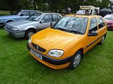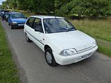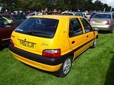 The Citroën Saxo was a supermini produced by the French manufacturer Citroën from 1996 to 2004. It was sold in Japan as the Citroën Chanson, because Honda had registered the “Saxo” name. As a badge engineered variant of the Peugeot 106 (which itself was a development of the Citroën AX), the major difference being interiors and body panels. Production ended in 2004, when it was replaced with the Citroën C2 and Citroën C3. All engines were from the PSA TU engine series that powered the Peugeot 205 from 1988 and the Citroën AX, and had their roots before that with the OHC PSA X engine various other PSA cars used, such as the Citroën Visa, Peugeot 104 and early Peugeot 205. The range included five petrol engines and one diesel engine, all naturally aspirated. Although the quoted power outputs are low in comparison to modern small hatchbacks, or even to other hatchbacks of the time, the kerb weight was generally very low, with even the range-topping VTS having a kerb weight of just 935 kg (2,061 lb), with other smaller engine models (except the diesel) being around 100 kg lighter than this. This meant a high power to weight ratio resulting in decent acceleration and made the car suitable for city driving. Aside from the VTS which had 16 valves, all engines were the older SOHC units which meant relatively low city MPG figures. Even the popular 1.1i engine would struggle to achieve more than 35 to 40mpg in town when driven carefully. The real world consumption between the smaller engines and the nippy 1.4i Westcoast/Furio variant was hardly noticeable, however the insurance premiums were. The early 1.0i was quite under powered, with the 1.1i being considered much better, since it was nearly 200cc larger and had roughly 30% more torque. There were three sport models of the Saxo: the Westcoast, later replaced by the Furio which featured a 1.4I 8V 75PS engine with a top speed of 175 km/h (109 mph), and a 0-62.5 mph (0–100 km/h) time of 11.2 seconds; the VTR MK1 (1997–1999) featured a 1.6I 8V 90PS engine with a top speed of 187 km/h (116 mph) and a 0-62.5 mph (0–100 km/h) time of 10.0 seconds. The VTR MK2 (1999–2003) featured a 1.6I 8V 98PS engine with a top speed of 193 km/h (120 mph) and a 0-62.5 mph (0–100 km/h) time of 9.4 seconds; the VTS 16V featured a 1.6I 120PS engine with a top speed of 205 km/h (127 mph), and a 0 to 60 mph time of 7.8 seconds. The VTS MK1 (1997–1999) and MK2 (1999–2003) shared similar performance, although the MK2 was slightly slower due to it being marginally heavier. These models included 247 mm (9.7 in) vented front brake discs, with the VTR and VTS also having rear brake discs (solid 247 mm (9.7 in) discs). Also, a different style of control arms and struts was used for the suspension. The VTS had a 22 mm (0.9 in) master brake cylinder, and the VTR and Westcoast/Furio had a 19 mm (0.7 in). The VTS had a 19 mm (0.7 in) front anti roll bar and 22 mm (0.9 in) rear anti roll bar, while the VTR and Westcoast/Furio had a 19 mm (0.7 in) front and 21 mm (0.8 in) or sometimes 19 mm (0.7 in) rear antiroll bar. In addition, all the sports models featured a unique bodykit to the other models, commonly known as the “VT” bodykit. In 1997 the Saxo’s three speed automatic gearbox was combined with the 1.6i 8V 90PS engine which was available on the Saxo SX and VSX. Then, in the end of 1997, the 1.6i automatic was replaced with a 1.4i 75PS engine. The 1.6i was more powerful with a top speed of 176 km/h (109MPH) compared with the 1.4’s top speed of 103 mph (166 km/h). Citroën carried on using the 1.4i engine on the facelift Saxo Automatic in 1999. Due to the C3 having a 1.4i automatic gearbox, the Saxo Automatic came to an end in March 2002, whilst the manual models were still sold right up to the end of 2003. The equipment list was generally sparse, with budget models having drivers airbag, seat belt pre tensioners, cassette player, heated rear screen and tinted windows, and early Mark Ones with keypad immobilisers and a clock in place of a tachometer and three stud wheels, much like the AX. Further up the list sunroofs, PAS, Electric windows, ultrasonic alarm, passenger airbag, CD player, tachometer, front fog lights, bodykits, colour coded mirror caps and alloy wheels were added, to name a few. Although MK2 Saxos were generally better equipped than their older counterparts, the interiors were still dated in comparison to other small hatchbacks of the time, such as the Vauxhall Corsa, with many of the centre console controls originating from the older model of the Citroën AX. The 1.6L VTR and VTS Saxos were the best equipped, with both gaining rear disc brakes as opposed to drum brakes, and ABS as standard for the VTS and an optional extra on all other 1.6-litre models. Few special models were released throughout the Saxo’s life, most notably the “Open Scandal”, a Saxo with a full length sliding canvas roof. Other special editions added certain extras to the lower end model, such as sunroofs or PAS. Notable models are the Westcoast up to 1999 and the Furio to 2003, as they incorporated the standard Saxo bodykit found on the VTR and VTS with a more insurance friendly 1.4-litre engine. The Westcoast is not to be confused with the Eastcoast, which was only available in the 1.0L and later 1.1L engines. The Eastcoast also did not incorporate the “VT” bodykit. Air conditioning was never an option on right hand drive Saxos because the blower motor was mounted in the bulk head on the driver’s side. As a result, there was insufficient space available to accommodate the evaporator, except by first ducting the air flow to the passenger’s side and then at the expense of the glove box. Although an after market kit was available that did exactly this, the resultant pressure loss made the system noisy and ineffective. The blower motor could also not be easily relocated, since the windscreen wiper motor was mounted in the passenger’s side space. In 