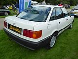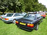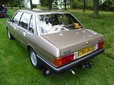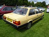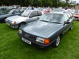 Many of the components in the Quattro were shared with these cars, the second generation Audi 80. This had been launched in September 1978, as a four door saloon, like its predecessor, and available with a small number of different engines and trims. Deliveries of the fuel injected GLE and two door bodied cars began early in 1979. The body of the B2 Audi 80 was designed by Giorgetto Giugiaro. No Estate or Avant variant was available, as the Volkswagen Passat filled that role, as the B2 was intended to move the 80 upmarket from the mid-sized family segment to a compact executive model pitched to rival the BMW 3-Series. The corresponding B2 version of the Passat appeared two years later, and although the two cars shared the same platform and running gear as before, the Passat had a much stronger visual identity distinct from its Audi 80 sister in comparison with the B1. The 80 first became available with four-wheel drive in 1983. The model was essentially an Ur-Quattro without the turbocharger and with saloon bodywork. The four-wheel drive 80, however, weighed more than a front-wheel drive Audi 100 CD with the same 2144 cc 136 PS engine, and with its worse aerodynamics it was slower than the larger, better equipped, and lower-priced 100. The 80 quattro received twin headlamps, a front spoiler with integrated foglights, and a body-coloured rubber spoiler on the rear. There was also a “quattro” script on the bootlid and a twin exhaust. The luggage compartment was marginally smaller. The 80 quattro was a bargain compared to the Ur-Quattro, but less so in comparison with the two-wheel drive 80 GTE or the 100 CD, although they did not offer the impressive road holding that the quattros do. In 1983, the 80 Sport was introduced in the UK, based on the GTE. It came with quattro-style Ronal alloys, rubber rear spoiler, deep chin spoiler, striped charcoal Recaro interior, and optional body graphics including full-length “Audi Sport” stripes. In mid-1984, Audi gave the B2 a subtle facelift with tail lights resembling the ones of the Typ 44 Audi 100, and different front and rear bumpers and headlights and an updated interior, and introduced the 90 nameplate for the 5 cylinder cars, pushing them still further up-market. The 1.6- and 1.8-litre 4 cylinder engines were replaced by newer iterations of the same, enabling the fitment of catalytic converters. The saloons were offered until late 1986 in Europe, and the B2-based Audi Coupé lasted through to 1988 before being changed.