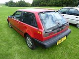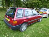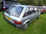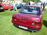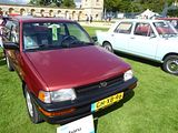 The Daihatsu Applause is a compact car (C-segment in Europe) manufactured by the Japanese automaker Daihatsu for British and Australian markets. The Daihatsu Applause was manufactured from 1989 to 2000. It is most notable for its unusual body style, which, despite appearing to be a 4-door notchback sedan, is in fact a 5-door liftback with a notchback-shaped 412-litre trunk and a tailgate. As Daihatsu firmly established itself as Toyota’s compact car specialist brand, compact cars were the biggest vehicles marketed by the company. When replacing the long-running Charmant, the company decided to try a unique approach at the segment, with the intention to capitalize on the preferences for sedans, while at the same time offering the flexibility and convenience of a 5-door hatchback body. Resulting from such thinking, the Applause was presented at the 1989 Geneva Motor Show in production-ready “concept” form, as the MS-X90. The engine was also a new development, a 16-valve 1.6-liter inline-four shared with the F300-series Rocky/Feroza/Sportrak. Daihatsu took the opportunity to introduce a platform that wasn’t shared with an existing Toyota platform that the previous Charmont used when the Toyota Corolla was changed to front wheel drive with the Toyota Corolla (E80) in 1983. In the first year in the market, Applause’s reputation was tarnished by widely publicized incidents of gasoline spurting under excessive air pressure while refuelling, which could lead to very hazardous accidents.[citation needed] Daihatsu fixed the problem in the 1990 model, named Applause Theta, to highlight the improvement. The car was engineered from the beginning to be equipped with four-wheel-drive, a model which appeared only a few months after the introduction. It came equipped with a viscous coupling, sending up to 47 percent of the power to the rear wheels. In the spring of 1991 Daihatsu presented a cabrio coach prototype of the Applause, called the “Applause Windward,” but it never entered production. In 1992, the Applause was mildly facelifted, with a subtle alteration of the front and rear fascias and slight increase in length. The “Theta” designation was dropped. The carburettor engine was not available anymore, replaced by a down-tuned version of the fuel injected engine which qualified for a lower insurance category in many European markets. The 1994 model year saw the cancellation of the AWD version, with a rear fascia upgrade and slight grille alteration given to the rest of the range. Although the Daihatsu Applause can be said to have looked very modern and be at least on par with competition in terms of size back in 1989, after seven years in the market it began to appear quite dated and smaller than newer compact cars. Daihatsu found it economically unjustifiable to replace the car with an all-new model, but rather gave the car an extensive facelift in hope of reviving weakening sales. The refreshed Applause debuted at the 57th Frankfurt Motor Show in September 1997. Totally new front and rear fascias provided for a much more “formal” appearance, along with a small increase in length. However, the car remained the same with regard to all other measurements, including cargo capacity. The facelift did not help sales result much, so the model was discontinued altogether in May 2000, without a direct replacement for export markets. In Japan, the Daihatsu Altis, which was in essence a rebadged Toyota Camry, took over its role as Daihatsu’s largest sedan. To see one of these cars now is rare but here there were three of them. The deep red one, brought over from Sweden, won the overall prze of the day – truly an exceptional unexceptional car!