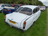 The DAF 55 is a small family car produced from December 1967 to September 1972. At that time it was replaced with the DAF 66. All 55s featured the unique Variomatic belt-driven continuously variable transmission, with no manual transmission available. This feature of all DAF cars was very unusual for its class at the time. The 55 was available as a 2-door saloon, a 3-door estate, and a 2-door coupé. The 55 was developed to be a more powerful version of the 1966 DAF 44. The redesign was extensive, and featured the following major changes: Because the 44’s two-cylinder DAF-designed boxer engine was at the end of its development, DAF partnered with Renault to build a 50 bhp version of their 1108 cc water-cooled inline-four Cléon engine, dubbed the B110; the front suspension was changed from the 44’s transverse leaf spring setup to longitudinally mounted torsion bars. At the rear, the 44’s swing axle layout incorporating the Variomatic transmission was retained; for added safety a dual circuit brake system was fitted. All models also featured front disc brakes as opposed to the 44’s drum brakes; the front panel was changed to provide room and airflow to the radiator. The rest of the car featured detail trim changes to set it apart from the lesser 44. All this heightened performance to a 136 km/h top speed, and made for a more practical car. The saloon was launched at the end of 1967, with the coupe version launched three months later, in March 1968. The coupe was overall more elegant than the saloon, featuring a lower and gently sloping roof line, pillarless doors and a more upscale interior featuring reclining seats, carpet instead of the saloon’s rubber mats and fake wood on the dashboard. Although the roof line turned it from a 4-seater into a 2+2, the coupe was a very successful model; 1 in 8 sold DAF 55s was a coupe. In September 1968 the estate version became available. In August 1969 there was a minor facelift of the whole model range and a delivery version became available, essentially a 55 estate without a rear seat. After the success of the DAF 55 in the London-Sydney Marathon, the dealer option ‘Marathon’ package was introduced. The multi-tier package meant that the dealer could fit an optical package with alloy wheels and interior parts, an uprated suspension, parts to upgrade the B110 engine to 65 bhp, or all of the above. In 1971 the factory version of this package was introduced, simply called the 55 Marathon. This did not feature an upgraded suspension, and had a 63 bhp 1108 cc engine, the BR110. This raised the top speed to 145 km/h. The 55 Marathon featured wider steel wheels, exterior striping and a brake booster was added for safety and comfort. The Marathon was available as a saloon or a coupe. In 1971 the coupe received normal doors with pillars, since the earlier pillarless design proved to be leaky and noisy at speed. In total 164,231 DAF 55s were built.