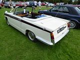 The Triumph Vitesse was introduced on 25 May 1962, reusing a name previously used by the pre-Second World War Triumph Motor Company from 1936–38, and was an in-line 6-cylinder performance version of the Triumph Herald small saloon. The Herald had been introduced on 22 April 1959 and was a 2-door car styled by the Italian designer Giovanni Michelotti. Within two years, Triumph began to give thought to a sports saloon based on the Herald and using their 6-cylinder engine. Michelotti was again approached for styling, and he came up with a car that used almost all body panels from the Herald, combined with a new front end with a slanted 4-headlamp design. Standard-Triumph fitted a 1596 cc version of their traditional straight-6 derived from the engine used in the Standard Vanguard Six, but with a smaller bore diameter of 66.75 mm, compared with the 74.7 mm bore on the Vanguard, equipped with twin Solex B32PIH semi-downdraught carburettors. These were soon replaced by B321H carburettors, as the accelerator pumps proved a problem. The curious observer will notice a “seam” on the cylinder block between the third & fourth cylinders revealing the design beginnings from the 803 cc Standard SC engine block, first used in the Standard Eight of 1953. The gearbox was strengthened and upgraded to closer (more sporting) gear ratios, and also offered with optional Laycock De Normanville ‘D-type’ overdrive with a 20% higher ratio for the top gear (the equivalent change from 3rd to 4th in a standard transmission), giving more relaxed and economical cruising at the expense of slight oil drag from the pump in the overdrive unit. Models fitted with overdrive had a chrome badge with “Overdrive” in italic text on the left side of the boot opposite the Vitesse 6 chrome script badge on the right. Synchromesh was present on 2nd, 3rd and 4th gears. The rear axle was changed to a slightly uprated differential, but retaining the same 4.11:1 ratio and flange sizes as the Herald. Front disc brakes were standard as were larger rear brake drums, and the Herald fuel tank was enlarged, retaining the reserve feature (essentially a curved pickup pipe that could be rotated to dip into the last few centimetres of fuel) of the smaller Herald tank. The front suspension featured uprated springs to cope with the extra weight of the new engine, but the rear suspension was almost the same as on the Herald—a swing-axle transverse-leaf system which quickly proved inadequate for the relatively powerful Vitesse. The chassis looked outwardly similar to the early Heralds but in fact was substantially re-designed and strengthened, especially around the differential mountings, improvements which were immediately passed through to Herald production. The dash and instrument panel of the earliest Vitesse was the same as the Herald, with a single speedo dial featuring fuel and temperature gauge insets. The Vitesse was available in convertible and saloon forms; a coupé never got beyond the prototype stage. The separate chassis construction of the car meant that no additional strengthening to chassis or body was considered necessary for the convertible model, the only concession being additional door catches to prevent the doors opening during hard cornering. The gearboxes of all the Vitesse and GT6 models were a weak point being derived from the earlier Heralds. The increased power caused accelerated wear on the bearing and forward end of the main shaft which would eventually wear through the hardened surface, leading to large amounts of play between the input and main shafts. This was characterised by growling gear noise on acceleration and deceleration in 1st, 2nd and 3rd getting high in each gear as the torque transmission from the lay shaft moved further from the rear of the box where the bearing support was intact. Repair involved either a new mainshaft or metal spraying/stellite repair. Some engineers suggested repairs were more long lived than a new shaft as the technology 10-20 and more years after manufacture meant that the repaired mainshaft had better specifications that new old stock. The remote lever construction suffered from the same regular bushing wear as the herald spitfire etc where sloppy gearchange and rattling can be cured (easy diy job) with a kit of new parts. A handful of Vitesse estates also were assembled to special order at Standard-Triumph’s Service Depot at Park Royal in West London. The interior was much improved over the Herald; wooden door cappings were added to match the wooden dashboard and the car featured slightly better seats and door trims. Optional extras included a vinyl/fabric, (Britax Weathershield), sunroof on saloon models. Exterior trim was also improved with an elongated stainless steel trim piece which extended further down the body than the Herald, including a Vitesse specific piece of trim rearward of the petrol filler cap and satin-silver anodised alloy bumper cappings replacing the white rubber Herald items. In September 1963 the Vitesse received its first facelift, when the dashboard was revised with a full range of Smith instruments instead of the large single dial from the Herald (large speedometer and cable driven tachometer flanked by smaller 2 inch fuel and temperature gauges). From September 1965, at commission number HB27986, the twin Solex carburettors were replaced by twin Stromberg CD 150 carburettors. Power output increased from the original 70 bhp at 5,000 rpm and torque of 92.5 lb/ft (125 Nm), enough to provide a useful performance boost and making the car a more flexible performer. There was a claimed, although somewhat optimistic increase of 13–14 bhp, and the motoring magazine tested top speed rose to 91 mph (146 km/h), with the 0–80 mph (0–129 km/h) time decreasing from 46.6 seconds to just 33.6 seconds. The Vitesse 6 sold extremely well for Triumph, and was by some way the most popular Vitesse sold during the model’s lifetime. The car was well liked