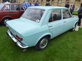 It was good to see an example of the Fiat 128 here. Named European Car of the Year in 1970, over three million were manufactured, but few are left.. Introduced in 1969, it was built in an entirely new plant in Rivalta, north-west of Turin, specifically to manufacture the car. With engineering by Dante Giacosa and engine design by Aurelio Lampredi, the 128 was noted for its relatively roomy passenger and cargo volume — enabled by a breakthrough innovation to the front-engine, front-drive layout which became the layout “adopted by virtually every other manufacturer in the world”. Front-wheel drive had previously been introduced to small, inexpensive cars with the British Mini. As engineered by Alec Issigonis, the compact arrangement located the transmission and engine sharing a single oil sump — despite disparate lubricating requirements — and had the engine’s radiator mounted to the side of the engine, away from the flow of fresh air and drawing heated rather than cool air over the engine. The layout often required the engine be removed to service the clutch. As engineered by Dante Giacosa, the 128 featured a transverse-mounted engine with unequal length drive shafts and an innovative clutch release mechanism. The layout enabled the engine and gearbox to be located side by side without sharing lubricating fluid while orienting an electrically controlled cooling fan toward fresh air flow. Fiat tested this then new engineering for a full five years in the Autobianchi Primula, Fiat’s less market-critical subsidiary, Autobianchi which allowed them to sufficiently resolve the layout’s disadvantages, including uneven side-to-side power transmission, uneven tyre wear and potential torque steer, the tendency for the power of the engine alone to steer the car under heavy acceleration. The compact and efficient layout — a transversely-mounted engine with transmission mounted beside the engine driving the front wheels through an offset final-drive and unequal-length driveshafts — subsequently became common with competitors and arguably an industry standard. The 128 used an all new 1.1 litre Fiat SOHC engine, engineered by noted engine designer Aurelio Lampredi, featuring an iron block mated to an aluminium head along with a belt-driven single overhead camshaft producing 49 hp. The 128 was styled similarly to the 124 and 125 and featured rack-and-pinion steering, front disc brakes, independent rear suspension with a transverse leaf spring, and a strut-type front suspension with integral anti-roll bar. Initially, the 128 was available as a two-door or four-door sedan. At the 1970 Turin Motor Show a three-door station wagon model called “Familiare” was added to the line-up. The car was only available with a 1116 cc engine on launch, though the two-door-only 128 Rally edition launched in 1971 used a 1,290 cc unit. Also in 1971, the Sport Coupé, an all-new coupé body on a shortened 128 platform, was unveiled at the Turin Show. At launch it was available with both existing 128 engines. The 128 range underwent a facelift in 1972, featuring a revised grille. 1974 saw the launch of the 128 Special, which used the Rally engine in a four-door sedan body. In 1975 the 128 3P (3-door) Berlinetta replaced the Sport Coupé. In 1976, the range received new bumpers, rectangular headlights, tail lights and dashboard as well as modifications to the engines. At this time, the wagon was also renamed the “Panorama”. Production of all 128s except that of the base 1,100 cc powered model ended in 1979 after the introduction of the Fiat Ritmo/Strada in 1978. In 1980 production of the small three-door station wagon Panorama was dropped from the range and 128 production finally ended in 1985