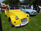 It was nice to see examples of the legendary 2CV here. There is a long history to this car, but it was only really with the relaunch of the model to the UK market in 1974 when interest here took off. Sales of the 2CV were reinvigorated by the 1974 oil crisis. The 2CV after this time became as much a youth lifestyle statement as a basic functional form of transport. This renewed popularity was encouraged by the Citroën “Raid” intercontinental endurance rallies of the 1970s where customers could participate by buying a new 2CV, fitted with a “P.O.” kit (Pays d’Outre-mer—overseas countries), to cope with thousands of miles of very poor or off-road routes. Because of new emission standards, in 1975 power was reduced from 28 hp to 25 hp. The round headlights were replaced by square ones, adjustable in height. A new plastic grille was fitted. In July 1975, a base model called the 2CV Spécial was introduced with the 435 cc engine. Between 1975 and 1990 under the name of AZKB “2CV Spécial” a drastically reduced trim basic version was sold, at first only in yellow and with an untreated black roof. Slimmer bumpers with stick-on tape rather than plastic strips and no overriders were fitted. It also had the earlier round headlights, last fitted in 1974. In order to keep the price as low as possible, Citroën removed the third side window, the ashtray, and virtually all trim from the car, while that which remained was greatly simplified, such as simple vinyl-clad door cards and exposed door catches rather than the plastic moulded trims found on the 2CV Club. Other 2CVs shared their instruments with the Dyane and H-Van but the Spécial had a much smaller square speedometer also incorporating the fuel gauge, originally fitted to the 2CV in the mid-1960s and then discontinued. The model also had a revised (and cheaper-to-make) plastic version of the 1960s two-spoke steering wheel instead of the one-spoke item from the Dyane, as found on the Club. From the 1978 Paris Motor Show the Spécial regained third side windows, and was available in red and white; beginning in mid-1979 the 602 cc engine was installed. In June 1981 the Spécial E arrived; this model had a standard centrifugal clutch and particularly low urban fuel consumption. By 1980 the boost to 2CV sales across Europe delivered by the 1973 Energy Crisis had begun to wear off and there was a whole new generation of superminis and economy cars available from European and Japanese manufacturers. Citroën itself now had the Visa available. Peak annual production for 2CVs was reached in 1974 (163,143 cars) but by 1980 this had dropped to 89,994 and by 1983 would stand at just 59,673. Nonetheless the car remained profitable for PSA to produce on account of its tooling and set-up costs being amortised many years before and it could share major parts with more popular or profitable models such as the Visa and Acadiane. As part of this rationalisation in 1981 the Spécial was fitted as standard with the 602 cc engine, although the 435 cc version remained available to special order in some European countries until stocks were used up. Also in 1981 a yellow 2CV6 was driven by James Bond (Roger Moore) in the 1981 film For Your Eyes Only. The car in the film was fitted with the flat-4 engine from a Citroën GS which more than doubled the power. In one scene the ultra light 2CV tips over and is quickly righted by hand. Citroën launched a special edition 2CV “007” to coincide with the film; it was fitted with the standard engine and painted yellow with “007” on the front doors and fake bullet hole stickers. In 1982 all 2CV models got inboard front disc brakes, which also used LHM fluid instead of conventional brake fluid—the same as was found in the larger Citroën models with hydropneumatic suspension. In late 1986 Citroën introduced the Visa’s replacement, the AX. This was widely regarded as a superior car to the Visa and took many of the remaining 2CV sales in France following its introduction. From 1986 to 1987 2CV production fell by 20 per cent to just 43,255 cars. Of that total over 12,500 went to West Germany and 7212 went to the UK. France was now the third-largest market for 2CVs, taking 7045 cars that year. It was estimated that Citroën was now selling the 2CV at a loss in the French market, but that it was still profitable in other European countries. The peak of 2CV sales in the United Kingdom would be reached in 1986, thanks to the introduction of the popular Dolly special edition (see below)—7520 new 2CVs were registered in Britain that year. This year saw the discontinuation of the Club, which was by then the only 2CV model to retain the rectangular headlamps. This left the Spécial as the only regular 2CV model, alongside the more fashion-orientated Dolly, Charleston and the other special editions. In 1988, production ended in France after 40 years. The factory at Levallois-Perret had been the global centre for 2CV production since 1948 but was outdated, inefficient and widely criticised for its poor working conditions. The last French-built 2CV was made on February 25. In recognition of the event, the last 2CV built at Levallois was a basic Spécial in a non-standard grey colour—the same shade as worn by the very first 2CVs. Production of the 2CV would continue at the smaller-capacity but more modern Mangualde plant in Portugal. In 1989 the first European emission standards were introduced voluntarily by a number of European nations, ahead of the legal deadline of July 1992. This meant that the 2CV was withdrawn from sale in Austria, Denmark, Italy, Spain, Sweden, Switzerland and The Netherlands—the latter one of the car’s largest remaining markets. That year the three leading markets for the 2CV were West Germany (7866), France (5231) and the UK (3200). The last 2CV was built at Mangualde on 27 July 1990—it was a specially-prepared Charleston model. Only 42,365 2CVs were built in Portugal in the two