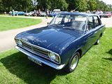 The second incarnation of the Cortina was designed by Roy Haynes, and launched on 18 October 1966, four years after the original Cortina. Although the launch was accompanied by the slogan “New Cortina is more Cortina”, the car, at 168 in long, was fractionally shorter than before. Its 2 1⁄2 inches of extra width and curved side panels provided more interior space. Again, two-door and four-door saloons were offered with base, Deluxe, Super, GT and, later, 1600E trims available, but again, not across all body styles and engine options. A few months after the introduction of the saloon versions, a four-door estate was launched, released on the UK market on 15 February 1967: much was made at the time of its class topping load capacity. Other improvements included a smaller turning circle, softer suspension, self-adjusting brakes and clutch together with the availability on the smaller-engined models, for the UK and some other markets, of a new five bearing 1,300 cc engine. A stripped-out 1,200 cc version running the engine of the Ford Anglia Super was also available for certain markets where the 1,300 cc engine attracted a higher rate of tax. The 1,500 cc engines were at first carried over, but were discontinued in July 1967 as a new engine was on its way. A month later, in August, the 1,300 received a new crossflow cylinder head design, making it more efficient, while a crossflow 1,600 replaced the 1,500. The new models carried additional “1300” or “1600” designations at the rear. The Cortina Lotus continued with its own unique engine, although for this generation it was built in-house by Ford themselves. The Cortina was Britain’s most popular new car in 1967, achieving the goal that Ford had been trying to achieve since it set out to create the original Cortina back in 1962. Period reviews were favourable concerning both the styling and performance. For 1969, the Mark II range was given subtle revisions, with separate “FORD” block letters mounted on the bonnet and boot lids, a blacked out grille and chrome strips on top and below the taillights running the full width of the tail panel marking them out.