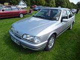 In April 1985, the third-generation Granada arrived, which was essentially a rebadged Ford Scorpio, the Granada name being used in both Ireland and the United Kingdom only, with the Scorpio badge (which covered the whole range in Continental Europe) being used instead as a trim designation for the top of the range models. The Mark III Granada was the first European volume production model to have antilock brakes fitted as standard across the range. It was voted European Car of the Year in 1986. Engine options included the familiar SOHC Pinto engine, in either tax-barrier undercutting 1.8 L form, or a more powerful 2-litre version with fuel injection available. The Cologne V6 engines were carried over from the previous range in short-lived (and not much more powerful than the 2 L Pinto) 2.4 L, and 2.8 L (later 2.9 L) capacities. In 1991, a new range-topping vehicle was introduced, the Scorpio 24-valve. It featured a 2.9 L Cologne engine that had been extensively reworked by Cosworth Engineering and featured quad camshafts and 24 valves, enough for 200 bhp. According to Ford, this gave a 0-60 mph time of 8.1 seconds and top speed of 140 mph (230 km/h). This version of the Granada continued the “Ford family” styling concept from the previous versions; this time, the car superficially resembled a larger version of the Cortina’s successor, the Ford Sierra. It had followed the precedent set by both the Sierra and the Escort Mk III in changing from the angular saloon styling of their predecessors to an advanced aerodynamic hatchback body style. The Ford Granada Mk III was the last car to bear the Granada badge in the UK and Ireland, being replaced in 1994 with the pan-European Scorpio. The Scorpio shared its platform doors and roof with the Mk III Granada. The styling of the nose and tail sections were updated to match the ovoid designs being used across the Ford range in the 1990s. On the Scorpio, this resulted in a controversial design. After a 1998 redesign, it was taken out of production the same year with total European sales being 95,587 units.