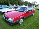 It was great to see the fabulous Alfa 164 here. I love these cars with my affection stemming from the fact that I had the pleasure of driving one for 4 years and 160,000 miles and to this day, it is the car I regret parting with more than any other of the fleet that I have owned over the years. When I bought mine, Alfa were selling a very small number of cars per month in the UK, so they were never that common, and sadly, survival rates are very low. Most people who know anything about the history of the 164 will be aware that this is one of the four so-called Type 4 cars, a joint venture involving Alfa Romeo, Fiat, Lancia and Saab. In 1978 these four marques agreed to each develop an executive saloon based on a shared platform to compete against the likes of the Ford Granada and Opel Rekord (Vauxhall Carlton) as well as more premium saloons by BMW and Mercedes-Benz in the form of the 5-Series and E-Class, respectively. Alfa’s Project 164 started life as Project 154 and was completed in 1981, then still under Alfa Romeo. A year later, that project morphed into the 164 based on the Type Four platform. This new model was designed by Enrico Fumia of Pininfarina, with a wedge shape that afforded it a leading drag coefficient of Cd=0.30. The design would later influence the rest of the Alfa Romeo range starting in 1990 with the major redesign of the 33 and culminating with the 155, and Pininfarina also adapted it (much to the maker’s chagrin) for the 1987 Peugeot 405 and the 1989 Peugeot 605 saloons. Initial testing of the 164’s dynamic elements (engine and drivetrain) began in 1984, where mules based on the then contemporary Giulietta were used. In 1985, the first pre-production 164’s were put through their paces on the road. Heavily disguised, with many false panels and even a false nose design (borrowing heavily from the then equally undeveloped 155), sporting 4 round headlamps, these vehicle mules served to test the 164 for the gruelling 1 million kilometre static and road testing demanded of the design. In 1986 and 1987, the first 150 164’s were given their pre-production testing. In terms of engineering demands, these exceeded every Alfa before, and by quite a substantial margin. In Morocco, desert testing saw 5 grey 164 Twinsparks and V6’s undergo the equivalent of the Paris-Dakar rally. Road conditions varied from good tarmac to off-road conditions, and accelerometers confirmed the superiority of the 164 in terms of passenger comfort. This data was cross-confirmed in the engineering laboratory with a sophisticated dummy in the driver’s seat, with accelerometers both in its seat, and in its ears to mimic that of the semi-circular canals of the ear. The Twinspark and the V6 underwent handling trials at Arese. The Twinspark displayed very mature driving manners at the limit, with minimal skid. The V6 displayed a 25% increase in at-the-limit skid, a natural consequence of its greater nose weight. ABS testing confirmed that the Twinspark has superior braking to the V6. Brake linings of the 164’s were run at maximum braking until they literally glowed with heat, and displayed no deviation in form. The 164 was the first Alfa to feature slotted double-walled disc brakes. At no point were the discs drilled to release excess heat, the original design being demonstrated to be excellent. Sound production was tested in an anechoic chamber, the car being subjected to stress and road noise testing, with instruments and with live subjects at the wheel, on a specially designed rig. Electromagnetic stability of the complex electronic system was also tested, in an anechoic chamber equipped with EM emitters (radar). The 164 engines were run to destruction, the Twinspark proving to be the most robust, and with the longest possible engine life. The V6 displayed only 10% shorter overall engine life. All this testing meant that by the time the production car, called the 164 was unveiled at the 1987 Frankfurt Motor Show – the last model to be developed while the Alfa Romeo was still a fully independent company, even though the launch was a few months after the takeover by Fiat – that the car was far more thoroughly developed and tested than any Alfa preceding it. There were plenty of innovations in the build, too, thanks to the extensive use of galvanised steel for the frame and various body panels for the first time in the brand’s history. Moreover, the car featured advanced electronics thanks to the most complex wiring harness fitted to any Alfa Romeo. For example: it had three onboard computers (one for air conditioning, one for instrumentation, and one for the engine management); air conditioning and instrument functions shared a multiple-mode coded Zilog Z80-class microcontroller for dashboard functioning). The instrumentation included a full range of gauges including an advanced check-panel.. The car was a sensation at launch. For a start, it looked fantastic thanks to Enrico Fumia of Pininfarina’ design. The first 1:1 scale model of the car had been produced in 1982 and design cues had been publicly revealed on the Alfa Romeo Vivace concept car, which was exhibited at the 1986 Turin Motorshow that went on to influence the design of the Alfa Romeo GTV and Spider (916 series) launched in 1993, but the result was distinctive and elegant and very different from any of its rivals, or indeed any of the other Tipo 4 cars. The 164 became the first Alfa to benefit from extensive use of computer aided design, used to calculate structural stresses that resulted in a very rigid but still relatively lightweight chassis. Although sharing the same platform as that of the Lancia Thema, Fiat Croma and Saab 9000, by virtue of the fact that it was the last of the four to enter production, it featured unique front suspension geometry and the most distinctive styling of the lot. In fact, for example, the other cars all shared identical side door panels. Though still voluminous, the 164 had the tight