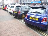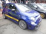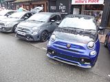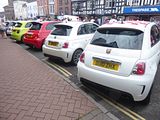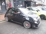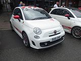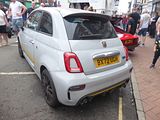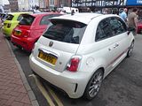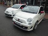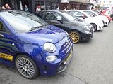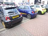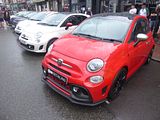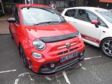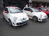 The vast majority of Abarth cars here were the 500-based models which have been on sale now since the end of 2008, following a launch at the Paris Show that year. Since that time there have been a number of detailed changes to the standard cars and a lot of limited editions. Those who really know the marque can spot most of them, but some are so subtle that unless there is a badge you can see, you will not be quite sure which version you are looking at. It used to be relatively easy, when the model was first launched, as there was only one version as shipped ex works called the 500. It had a 135 bhp 1.4 litre turbo-charged engine coupled to a five speed manual gearbox, with 16″ alloys as standard, and the option of 17″ wheels, and a colour palette comprising of two whites (BossaNova White, the standard colour, or the pearlescent Funk White), Red (Pasadoble), Pale Grey (Campovolo) or Black. If you wanted more power – 160 bhp – then you could order an Esseesse kit, which came in a large wooden crate, containing new wheels, springs, an ECU upgrade, the Monza exhaust system and badging. It was dealer fitted and could be applied at any time within the first 12 months or 10,000 miles from registration. Needless to say, it proved popular. As were many of the optional extras, with stickers for the sides, a large scorpion for the bonnet and even a chequered pattern for the roof among the personalisation options offered. Several of the original style of cars were here.