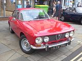 The first car was called the Alfa Romeo Giulia Sprint GT, and was revealed at a press event held at the then newly opened Arese plant on 9 September 1963, and displayed later the same month at the Frankfurt Motor Show. In its original form the Bertone body is known as scalino (step) or “step front”, because of the leading edge of the engine compartment lid which sat 1/4 an inch above the nose of the car. The Giulia Sprint GT can be distinguished from the later models by a number of features including: Exterior badging: Alfa Romeo logo on the front grille, a chrome script reading “Giulia Sprint GT” on the boot lid, and rectangular “Disegno di Bertone” badges aft of the front wheel arches; flat, chrome grille in plain, wide rectangular mesh without additional chrome bars; single-piece chrome bumpers; no overriders. Inside the cabin the padded vinyl dashboard was characterised by a concave horizontal fascia, finished in grey anti-glare crackle-effect paint. Four round instruments were inset in the fascia in front of the driver. The steering wheel was non-dished, with three aluminium spokes, a thin bakelite rim and a centre horn button. Vinyl-covered seats with cloth centres and a fully carpeted floor were standard, while leather upholstery was an extra-cost option. After initially marketing it as a four-seater, Alfa Romeo soon changed its definition of the car to a more realistic 2+2. The Giulia Sprint GT was fitted with the 1,570 cc version of Alfa Romeo’s all-aluminium twin cam inline four (78 mm bore × 82 mm stroke), which had first debuted on the 1962 Giulia Berlina. Breathing through two twin-choke Weber 40 DCOE 4 carburettors, on the Sprint GT this engine produced 105 hp at 6,000 rpm. Like all subsequent models, the Sprint GT was equipped with an all-synchromesh 5-speed manual transmission. The braking system comprised four Dunlop disc brakes and a vacuum servo. The rear brakes featured an unusual arrangement with the slave cylinders mounted on the axle tubes, operating the calipers by a system of levers and cranks. According to Alfa Romeo the car could reach a top speed of “over 180 km/h (112 mph)”. In total 21,902 Giulia Sprint GT were produced from 1963 to 1965, when the model was superseded by the Giulia Sprint GT Veloce. Of these 2,274 were right hand drive: 1,354 cars fully finished in Arese, and 920 shipped in complete knock-down kit form for foreign assembly. For 1966, the Giulia Sprint GT was replaced by the Alfa Romeo Giulia Sprint GT Veloce, which was very similar but featuring a number of improvements: a revised engine—slightly more powerful and with more torque—better interior fittings and changes to the exterior trim. Alongside the brand new 1750 Spider Veloce which shared its updated engine the Sprint GT Veloce was introduced at the 36th Geneva Motor Show in March 1966, and then tested by the international specialist press in Gardone on the Garda Lake. Production had began in 1965 and ended in 1968. The Giulia Sprint GT Veloce can be most easily distinguished from other models by the following features: badging as per Giulia Sprint GT, with the addition of round enamel badges on the C-pillar—a green Quadrifoglio (four-leaf clover) on an ivory background—and a chrome “Veloce” script on the tail panel; black mesh grille with three horizontal chrome bars; the grille heart has 7 bars instead of 6; stainless steel bumpers, as opposed to the chromed mild steel bumpers on the Giulia Sprint GT. The bumpers are the same shape, but are made in two pieces (front) and three pieces (rear) with small covers hiding the joining rivets. Inside the main changes from the Giulia Sprint GT were imitation wood dashboard fascia instead of the previous anti-glare grey finish, front seats revised to a mild “bucket” design, and a dished three aluminium spoke steering wheel, with a black rim and horn buttons through the spokes. The Veloce’s type 00536 engine, identical to the Spider 1600 Duetto’s, featured modifications compared to the Giulia Sprint GT’s type 00502—such as larger diameter exhaust valves. As a result it produced 108 hp at 6,000 rpm, an increase of 3 hp over the previous model, and significantly more torque. The top speed now exceeded 185 km/h (115 mph). Early Giulia Sprint GT Veloces featured the same Dunlop disc brake system as the Giulia Sprint GT, while later cars substituted ATE disc brakes as pioneered on the GT 1300 Junior in 1966. The ATE brakes featured an handbrake system entirely separate from the pedal brakes, using drum brakes incorporated in the rear disc castings. Though the Sprint GT Veloce’s replacement—the 1750 GT Veloce—was introduced in 1967, production continued throughout the year and thirty final cars were completed in 1968. By then total Giulia Sprint GT Veloce production amounted to 14,240 examples. 1,407 of these were right hand drive cars, and 332 right hand drive complete knock-down kits. The Alfa Romeo 1750 GT Veloce (also known as 1750 GTV) appeared in 1967 along with the 1750 Berlina sedan and 1750 Spider. The same type of engine was used to power all three versions; this rationalisation was a first for Alfa Romeo. The 1750 GTV replaced the Giulia Sprint GT Veloce and introduced many updates and modifications. Most significantly, the engine capacity was increased to 1779 cc displacement. Peak power from the engine was increased to 120 hp at 5500 rpm. The stroke was lengthened from 82 to 88.5 mm over the 1600 engine, and a reduced rev limit from 7000 rpm to 6000 rpm. Maximum torque was increased to 137 lb·ft at 3000 rpm. A higher ratio final drive was fitted (10/41 instead of 9/41) but the same gearbox ratios were retained. The result was that, on paper, the car had only slightly improved performance compared to the Giulia Sprint GT Veloce, but on the road it was much more flexible to drive and it was easier to maintain higher average speeds for fast touring. For the United States market, the 1779 cc en