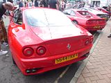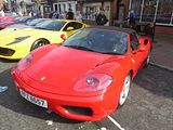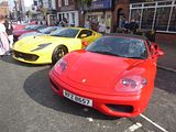 There was also David Morris’ example of the 360 Challenge Stradale here. This was a low production track day focused car based on the 360 Modena. From a handling and braking performance perspective was the equivalent of adding a FHP (Fiorano Handling Pack) to the 360, which was available for V12 models such as the 550, 575 or F599 but never separately for the V8’s. It was inspired by the 360 Modena Challenge racing car series so the focus was primarily on improving its track lapping performance credentials by concentrating on handling, braking and weight reduction characteristics, which are essential in pure racing cars. Ferrari engineers designed the car from the outset with a goal of 20% track day use in mind and 80% road use. With only a small 20 bhp improvement in engine power from the Modena (and boasting an improved power-to-weight ratio) the Challenge Stradale accelerates from 0 to 100 km/h (62 mph) in 4.1 seconds according to Ferrari, four tenths faster than a Modena, but bald figures do not paint the full picture. For the enthusiastic driver the differences are truly staggering; genuine systematic improvements were achieved to the setup and feel of the whole car. Throttle response from the digital throttle was ratcheted up and feedback through the steering wheel was enhanced. The responsiveness of the controls, the balance of the chassis, the braking performance and the driver feedback all contribute greatly to the overall driving experience. Thanks to CCM brakes borrowed from the Enzo, some lower weight parts and a FHP handling pack, the Challenge Stradale was able to claim an impressive 3.5 seconds improvement per lap of its Fiorano circuit compared to the Modena (the target was 2.5 seconds). In total, the Challenge Stradale is up to 110 kg (243 lb) lighter than the standard Modena if all the lightweight options are specified such as deleted radio, lexan (plexiglass) door window and Alcantara fabric (instead of the leather option). As much as 74 kilograms (207 lb) was taken off on the car by lightening the bumpers, stripping the interior of its sound deadening and carbon mirrors and making the optional Modena carbon seats standard. Resin Transfer Moulding was utilized for the bumpers and skirts, a carry over from the Challenge cars which resulted in lighter bumpers than on the Modena. The engine and transmission weight was slimmed down 11 kg (24 lb) through the use of a smaller, lighter weight sports (yet still stainless steel) exhaust back box and valved exit pipes. The Challenge Stradale also got Brembo carbon ceramic brakes as standard (which later became standard fitment on the F430) which shaved 16 kg off the curb weight and improved handling by reducing unsprung weight and completely eliminating brake fade. Cars fitted with the centre console stereo option, sub speaker box behind the seats and glass side windows re-gained approximately 30 kg over the best selected options (from a weight perspective). Challenge Stradale models are much sought after these days, and when they do come up for sale, they command a huge premium over the regular 360 Modena cars.
