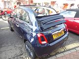 This is a special edition of the facelift Fiat 500 that showcases the Riva yacht brand, which is owned by the Ferretti Group. It features special Sera Blue paint with a contrasting double aquamarine line running around the waist of the car. The interior continues the luxury yacht theme, with ivory leather seats complemented by mahogany wood trim running across the dashboard. The Riva special edition is available in both hatchback and 500C convertible variants.