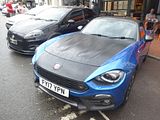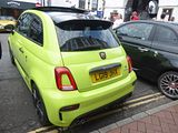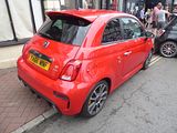 What is known as the Series 4 version of the familiar 595 reached the markets in the middle of 2016. After rumours had circulated all winter following the launch of the facelifted Fiat 500 last year, Abarth finally unveiled the Series 4 at the end of May 2016. Initially, we were told that the cars would not be available in the UK until September, but that came forward somewhat, with dealers all receiving demo cars in June, and the first customers taking delivery in July. Three regular production versions of both the closed car and the open-topped C were initially available, all badged 595, and called Custom, Turismo and Competizione, as before, though numerous limited edition models have since appeared and in most case disappeared. The most significant changes with the Series 4 are visual, with a couple of new colours, including the much asked for Modena Yellow and a different red, called Abarth Red, which replaces both the non-metallic Officina and – slightly surprisingly – the tri-coat pearlescent Cordolo Red. as well as styling changes front and rear. The jury is still out on these, with many, me included, remaining to be convinced. At the front, the new air intake does apparently allow around 15 – 20 % more air in and out, which will be welcome, as these cars do generate quite a lot of heat under the bonnet. Competizione models for the UK retain the old style headlights, as they have Xenon lights as standard, whereas the Custom and Turismo cars have reshaped units. At the back, there are new light clusters and a new rear bumper and diffuser. Inside, the most notable change is the replacement of the Blue & Me system with a more modern uConnect Audio set up, which brings a new colour screen to the dash. Mechanically, there is an additional 5 bhp on the Custom (now 145) and Turismo (now 165 bhp) and the option of a Limited Slip Diff for the Competizione, which is likely to prove a popular option. Details of the interior trim have changed, with a filled-in glovebox like the US market cars have always had, and electric windows switches that are like the US ones, as well as a part Alcantara trim to the steering wheel in Competizione cars. These cars have now been on offer for seven years and with Abarth sales on the rise, it was no surprise that they were particularly well represented here.