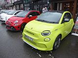 The Abarth New 500e Scorpionissima is a performance variant that made its official debut on 22 November 2022, featuring unique scorpion-badged alloy wheels. Initially, it is being released in a Scorpionissima edition limited to 1,949 examples. Scorpionissima models will be available in a choice of Acid Green or Poison Blue colours, bearing unique side graphics and wheels. The first deliveries were scheduled for June 2023. It has a single electric traction motor that produces 114 kW (153 hp) and 235 Nm (173 lb/ft), an increase of 26.7 kW (35.8 hp) and 15 Nm (11 lb/ft) over the standard motor, and accelerates from 0 to 100 km/h (62 mph) in 7 seconds. The enhancements in power and torque output are derived from improved inverter and battery wiring, and a reduction in the final-drive ratio. The Abarth also swaps the rear drum brakes on the New 500 for discs. Three driving modes are offered: Turismo, Scorpion Street, and Scorpion Track; output power and torque are limited to 100 kW (130 hp) and 220 Nm (160 lb/ft) in Turismo. Scorpion Street maximizes regenerative braking, simulating the engine braking effect of a conventional car equipped with a manual transmission, while Scorpion Track sacrifices range for performance. In manufacturer testing at Balocco, the Abarth 500e is able to complete laps 1 second quicker than the Abarth 695. Total weight is 1,410 kg (3,110 lb), including the 295 kg (650 lb) battery. Charging hardware is carried over from the regular New 500 equipped with the larger battery, at rates up to 85 kW. The Abarth 500e has a battery with a capacity of 42.2 kWh (gross) and 37.3 kWh (net), giving the vehicle a claimed range of 264 km (164 mi) under the WLTP driving cycle with the standard 17-inch wheels; equipping the 18-inch wheels reduces range to 253 km (157 mi). Real-world mixed driving with 18-inch wheels indicated an actual range of 212 km (132 mi), with consumption of 3.4 mi/kWh.