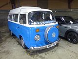 Making its customary appearance here was “Eeyore”, the name given by owner Beth Schofield to her very late model Type 2 VW. There were a couple of examples of the Type 2 “Bus”, the second generation of VW’s versatile van range, first seen in late 1967. It was built in Germany until 1979. In Mexico, the Volkswagen Kombi and Panel were produced from 1970 to 1994. Models before 1971 are often called the T2a (or “Early Bay”), while models after 1972 are called the T2b (or “Late Bay”). This second-generation Type 2 lost its distinctive split front windshield, and was slightly larger and considerably heavier than its predecessor. Its common nicknames are Breadloaf and Bay-window, or Loaf and Bay for short. At 1.6 litres and 47 bhp DIN, the engine was also slightly larger. The battery and electrical system was upgraded to 12 volts, making it incompatible with electric accessories from the previous generation. The new model also did away with the swing axle rear suspension and transfer boxes previously used to raise ride height. Instead, half-shaft axles fitted with constant velocity joints raised ride height without the wild changes in camber of the Beetle-based swing axle suspension. The updated Bus transaxle is usually sought after by off-road racers using air-cooled Volkswagen components. The T2b was introduced by way of gradual change over three years. The first models featured rounded bumpers incorporating a step for use when the door was open (replaced by indented bumpers without steps on later models), front doors that opened to 90° from the body, no lip on the front guards, unique engine hatches, and crescent air intakes in the D-pillars (later models after the Type 4 engine option was offered, have squared off intakes). The 1971 Type 2 featured a new, 1.6 litre engine with dual intake ports on each cylinder head and was DIN-rated at 50 bhp. An important change came with the introduction of front disc brakes and new roadwheels with brake ventilation holes and flatter hubcaps. Up until 1972, front indicators are set low on the nose rather than high on either side of the fresh air grille – giving rise to their being nicknamed “Low Lights”. 1972’s most prominent change was a bigger engine compartment to fit the larger 1.7- to 2.0-litre engines from the Volkswagen Type 4, and a redesigned rear end which eliminated the removable rear apron and introduced the larger late tail lights. The air inlets were also enlarged to accommodate the increased cooling air needs of the larger engines. In 1971 the 1600cc Type 1 engine as used in the Beetle, was supplemented with the 1700cc Type 4 engine – as it was originally designed for the Type 4 (411 and 412) models. European vans kept the option of upright fan Type 1 1600 engine but the 1700 Type 4 became standard for US spec models. In the Type 2, the Type 4 engine, or “pancake engine”, was an option for the 1972 model year onward. This engine was standard in models destined for the US and Canada. Only with the Type 4 engine did an automatic transmission become available for the first time in the 1973 model year. Both engines were 1.7 L, DIN-rated at 66 bhp with the manual transmission and 62 bhp with the automatic. The Type 4 engine was enlarged to 1.8 L and 67 bhp DIN for the 1974 model year and again to 2.0 L and 70 bhp DIN for the 1976 model year. The two-litre option appeared in South African manufactured models during 1976, originally only in a comparably well-equipped “Executive” model. The 1978 2.0 L now featured hydraulic valve lifters, eliminating the need to periodically adjust the valve clearances as on earlier models. The 1975 and later U.S. model years received Bosch L-Jetronic electronic fuel injection as standard equipment; 1978 was the first year for electronic ignition, utilising a hall effect sensor and digital controller, eliminating maintenance-requiring contact-breaker points. As with all Transporter engines, the focus in development was not on power, but on low-end torque. The Type 4 engines were considerably more robust and durable than the Type 1 engines, particularly in Transporter service. In 1972, exterior revisions included relocated front turn indicators, squared off and set higher in the valance, above the headlights. Also, square-profiled bumpers, which became standard until the end of the T2 in 1979, were introduced in 1973. Crash safety improved with this change because of a compressible structure behind the front bumper. This meant that the T2b was capable of meeting US safety standards for passenger cars of the time, though not required of vans. The “VW” emblem on the front valance became slightly smaller. Later model changes were primarily mechanical. By 1974, the T2 had gained its final shape. Very late in the T2’s design life, during the late 1970s, the first prototypes of Type 2 vans with four-wheel drive (4WD) were built and tested.