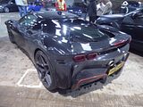 The Ferrari SF90 Stradale (Type F173) is a mid-engine PHEV (Plug-in Hybrid Electric Vehicle) sports car produced by the Italian automobile manufacturer Ferrari. The car shares its name with the SF90 Formula One car with SF90 standing for the 90th anniversary of the Scuderia Ferrari racing team and “Stradale” meaning “made for the road”. The car has a 7.9 kWh lithium-ion battery for regenerative braking, giving the car 26 km (16 mi) of electric range. The car comes with four driving modes depending on road conditions. The modes are changed by the eManettino knob present on the steering wheel. The eDrive mode runs the car only on the electric motors. The Hybrid mode runs the car on both the internal combustion engine and the electric motors and is the car’s default mode. In this mode, the car’s onboard computer (called control logic) also turns off the engine if the conditions are ideal in order to save fuel while allowing the driver to start the engine again. The Performance mode keeps the engine running in order to charge the batteries and keeps the car responsive in order for optimum performance. The Qualify mode uses the powertrain to its full potential. The control logic system makes use of three primary areas: the high-voltage controls of the car (including the batteries), the RAC-e (Rotation Axis Control-electric) torque vectoring system, and the MGUK along with the engine and gearbox. The SF90 Stradale is equipped with three electric motors, adding a combined output of 220 PS to a twin-turbocharged V8 engine rated at a power output of 780 PS at 7,500 rpm. The car is rated at a total output of 1,000 PS at 8,000 rpm and a maximum torque of 800 Nm (590 lb/ft) at 6,000 rpm. The engine is an evolution of the unit found in the 488 Pista and the upcoming F8 Tributo models. The engine’s capacity is now 3,990 cc by increasing each cylinder bore to 88 mm. The intake and exhaust of the engine have been completely modified. The cylinder heads of the engine are now narrower and the all-new central fuel injectors run at a pressure of 350 bar (5,100 psi). The assembly for the turbochargers is lower than that of the exhaust system and the engine sits 50 mm (2.0 in) lower in the chassis than the other mid-engine V8 models in order to maintain a lower centre of gravity. The engine utilises a smaller flywheel and an inconel exhaust manifold. The front wheels are powered by two electric motors (one for each wheel), providing torque vectoring. They also function as the reversing gear, as the main transmission (eight-speed dual-clutch) does not have a reversing gear. The engine of the SF90 Stradale is mated to a new 8-speed dual-clutch transmission. The new transmission is 10 kg (22 lb) lighter and more compact than the existing 7-speed transmission used by the other offerings of the manufacturer partly due to the absence of a dedicated reverse gear since reversing is provided by the electric motors mounted on the front axle. The new transmission also has a 30% faster shift time (200 milliseconds). A 16-inch curved display located behind the steering wheel displays various vital statistics of the car to the driver. The car also employs a new head-up display that would reconfigure itself according to the selected driving mode. The steering wheel is carried over from the 488 but now features multiple capacitive touch interfaces to control the various functions of the car. Other conventional levers and buttons are retained. The interior will also channel sound of the engine to the driver according to the manufacturer. The SF90 Stradale employs eSSC (electric Side Slip Control) which controls the torque distribution to all four wheels of the car. The eSSC is combined with eTC (electric Tractional Control), a new brake-by-wire system which combines the traditional hydraulic braking system and electric motors to provide optimal regenerative braking and torque vectoring. The car’s all-new chassis combines aluminium and carbon fibre to improve structural rigidity and provide a suitable platform for the car’s hybrid system. The car has a total dry weight of 1,570 kg (3,461 lb) after combining the 270 kg (595 lb) weight of the electric system. Ferrari states that the SF90 Stradale is capable of accelerating from a standstill to 100 km/h (62 mph) in 2.5 seconds, 0–200 km/h (124 mph) in 6.7 seconds and can attain a top speed of 340 km/h (211 mph). It is the fastest Ferrari road car on their Fiorano Circuit as of 2020, seven tenths of a second faster than the LaFerrari. The manufacturer claims that the SF90 Stradale can generate 390 kg (860 lb) of downforce at 250 km/h (155 mph) due to new findings in aero and thermal dynamics. The main feature of the design is the twin-part rear wing which is an application of the drag reduction system (DRS) used in Formula One. A fixed element in the wing incorporates the rear light, the mobile parts of the wing (called “shut off Gurney” by the manufacturer) integrate into the body by using electric actuators in order to maximise downforce. The SF90 Stradale uses an evolution of Ferrari’s vortex generators mounted at the front of the car. The car employs a cab-forward design in order to utilise the new aerodynamic parts of the car more effectively and in order to incorporate radiators or the cooling requirements of the hybrid system of the car. The design is a close collaboration between Ferrari Styling Centre and Ferrari engineers. The rear-end of the car carries over many iconic Ferrari Styling elements such as the flying buttresses. The engine cover has been kept as low as possible in order to maximise airflow. According to the car’s lead designer, Flavio Manzoni, the car’s design lies in between that of a spaceship and of a race car. The rear side-profile harkens back to the 1960s 330 P3/4. Deliveries in the UK started in late 2020 and so numbers here are gradually building up.