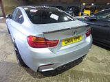 On 25 September 2013, BMW released the technical specifications of the M4. It is powered by the S55B30 engine, which is developed and engineered by BMW M GmbH. This 3.0-litre inline-6 engine has been built specifically for the new M4/M3, having a redline of 7,600 rpm with the rev limiter actuated at 7,300 rpm. The engine uses two mono-scroll turbochargers with a peak boost pressure of 18.1 psi (1.2 bar). The power is rated at 431 PS/425 hp, however this is achieved not at a specific engine speed, but is instead rated throughout the range of 5,500–7,300 rpm. The engine’s torque is rated at 550 Nm (406 lb/ft) throughout the range of 1,850–5,500. Two transmission choices are available, the 6-speed manual and the 7-speed M-DCT transmissions. The 7-speed M-DCT transmission accelerates the car from 0 to 100 km/h (62 mph) in 4.1 seconds) and the 6-speed manual transmission from 0 to 100 km/h (62 mph) in 4.3 seconds. The weight of the European specification M4 equipped with a manual transmission is 1,572 kg (3,466 lb) and with the M-DCT dual-clutch transmission, the car is some 40 kg (88 lb) heavier, losing some 80 kg (176 lb) as compared to the E92 M3. As per its E92 predecessor, the roof of the coupe model is constructed from carbon fibre (except if the optional sunroof is fitted). Carbon fibre is also used for the bootlid and engine brace. For the first time in a M3/M4 model, an electric power steering unit is used. The steering system is specifically tuned for both the M3 and M4, however it has been criticized for lacking in feel. The 18 inches (460 mm) and 19 inches (480 mm) wheel options are available with lightweight forged alloy wheels being standard. The M compound brakes come standard (with blue brake calipers), while carbon ceramic brakes (with gold brake calipers) are available as an option. The M4 features Active Sound, live amplification of the engine’s natural sound inducted into the passenger cabin via speakers in the car. BMW claims this technology has been used so that the well insulated cabin can reduce road/wind noise but still provide the driver with the sporty sound of the M powered engine. There are no artificial sound or any pre-recorded track in the system. This system was first implemented in the M5. The M4 is based on the F32 4 Series however 50 percent of its components are unique as compared to the 4 Series. The convertible variant of the M4 was announced along with its coupe sibling, also internally known as F82 or F83 M4. It shares almost everything with the coupé version, but weighs more due to its folding metal roof. The convertible weighs 1,750 kg (3,858 lb) (manual), 1,691 kg (3,728 lb) (M-DCT). The three-piece retractable hardtop folds in 20 seconds. The only significant difference between the two is the weight due to its retractable hardtop. Like its hardtop counterpart, the F83 M4 uses carbon fibre reinforced plastic to lighten and stiffen the car. Because of its extra weight it accelerates slower, taking it 0.3 seconds longer to 100 km/h (62 mph); 4.6 seconds with the manual and 4.3 seconds with the M-DCT transmission. The dynamic differences between the two variants are marginally small. Starting from the 2019 model year (production from 07/2018 onward) BMW removed the carbon fibre driveshaft so as to be able to fit an Otto Particulate Filter (OPF), necessary to comply with WLTP emissions regulations and this also meant that the M Performance Exhaust was no longer able to be offered on these cars by BMW. In February 2016, BMW announced the M4 Competition Package. The M4 Competition Package increases power output by 19 PS to 450 PS/444 hp and has a revised suspension for better handling. New springs, dampers and anti-roll bars complement the included Adaptive M Suspension. BMW also re-tuned the electronic differential and the Dynamic Stability Control to match the upgraded hardware. The interior remains largely unchanged, but Competition Package cars get new lightweight sport seats along with the M-striped woven seat belts. The exterior includes the M Sport exhaust with black chrome tailpipes and high gloss Shadow Line exterior trim. Gloss black trim is added to the kidney grille, side gills, and model badge on the trunk. With the Competition Package, the coupe version accelerates from standstill to 100 km/h (62 mph) in 4.0 seconds. There is a convertible version, and that does the run in 4.2 seconds, both coupe and convertible forms using the dual-clutch transmission.