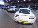 Following the unveiling of the AMV8 Vantage concept car in 2003 at the North American International Auto Show designed by Henrik Fisker, the production version, known as the V8 Vantage was introduced at the Geneva Motor Show in 2005. The two seat, two-door coupé had a bonded aluminium structure for strength and lightness. The 172.5 inch (4.38 m) long car featured a hatchback-style tailgate for practicality, with a large luggage shelf behind the seats. In addition to the coupé, a convertible, known as the V8 Vantage Roadster, was introduced later in that year. The V8 Vantage was initially powered by a 4.3 litre quad-cam 32-valve V8 which produced 380 bhp at 7,300 rpm and 409 Nm (302 lb/ft) at 5,000 rpm. However, models produced after 2008 had a 4.7-litre V8 with 420 bhp and 470 Nm (347 lbft) of torque. Though based loosely on Jaguar’s AJ-V8 engine architecture, this engine was unique to Aston Martin and featured race-style dry-sump lubrication, which enabled it to be mounted low in the chassis for an improved centre of gravity. The cylinder block and heads, crankshaft, connecting rods, pistons, camshafts, inlet and exhaust manifolds, lubrication system and engine management were all designed in house by Aston Martin and the engine was assembled by hand at the AM facility in Cologne, Germany, which also built the V12 engine for the DB9 and Vanquish. The engine was front mid-mounted with a rear-mounted transaxle, giving a 49/51 front/rear weight distribution. Slotted Brembo brakes were also standard. The original V8 Vantage could accelerate from 0 to 60 mph in 4.8 seconds before topping out at 175 mph. In 2008, Aston Martin introduced an aftermarket dealer approved upgrade package for power and handling of the 4.3-litre variants that maintained the warranty with the company. The power upgrade was called the V8 Vantage Power Upgrade, creating a more potent version of the Aston Martin 4.3-litre V8 engine with an increase in peak power of 20 bhp to 400 bhp while peak torque increased by 10 Nm to 420 Nm (310 lb/ft). This consists of the fitting of the following revised components; manifold assembly (painted Crackle Black), valved air box, right and left hand side vacuum hose assemblies, engine bay fuse box link lead (ECU to fuse box), throttle body to manifold gasket, intake manifold gasket, fuel injector to manifold seal and a manifold badge. The V8 Vantage had a retail price of GB£79,000, US$110,000, or €104,000 in 2006, Aston Martin planned to build up to 3,000 per year. Included was a 6-speed manual transmission and leather-upholstery for the seats, dash board, steering-wheel, and shift-knob. A new 6-speed sequential manual transmission, similar to those produced by Ferrari and Lamborghini, called Sportshift was introduced later as an option. An open-topped model was added to the range in 2006 and then in the quest for more power a V12 Vantage joined the range not long after. A total of 18 different versions of the car were produced during its 12 year life.