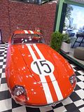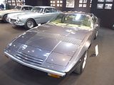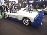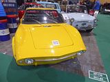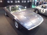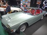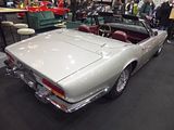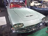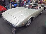 There were a couple of the very pretty Ghibli model – the first of three very different models to bear the name – on dealer stands. First unveiled in prototype form on the Maserati stand at the November 1966 Turin Motor Show, this grand tourer with an all steel body, characterised by a low, shark-shaped nose, was designed by a young Giorgetto Giugiaro, then working at Carrozzeria Ghia. Deliveries started in March of the following year. While the 1966 Ghia prototype was a two-seater, on the production car two emergency rear seats were added—consisting of nothing more than a cushion without backrest—and the Ghibli was marketed as a 2+2, though everyone tends to think of this car as a 2 seater, and the later Indy as the real 2+2 from the range. The first Ghibli cars were powered by a front placed quad-cam 4.7 litre dry sump V8 engine that prodiuced 306 bhp, mated to a five-speed manual or, on request, to a three-speed automatic transmission. It had a 0-60 mph time of 6.8 seconds, a top speed of 250 km/h (155 mph). The car also featured pop-up headlamps, leather sport seats and alloy wheels. A convertible version, the Ghibli Spyder, went into production in 1969. Its convertible top folded away under a flush fitting body-colour tonneau cover behind the front seats; thus the Spyder eschewed any vestigial rear passenger accommodation, and was a strict two-seater. A removable hard top was available as an option. The 4.9-litre Ghibli SS was released later in 1969. Its V8 engine was stroked 4 mm to displace 4930 cc, and put out 330 bhp; its top speed of 280 km/h (174 mph) made it the fastest Maserati road car ever produced. In all, 1,170 coupés and 125 Spyders (including 25 Spyder SS) were produced.