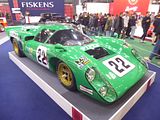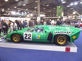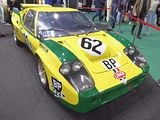 The Lola T70 is a sports prototype developed by British manufacturer Lola Cars in 1965, the successor to its Mk6. Lola built the aluminium monocoque chassis, which were typically powered by large American V8s. The T70 was quite popular in the mid to late 1960s, with more than 100 examples being built in three versions: an open-roofed Mk II spyder, followed by a Mk III coupé, and finally a slightly updated Mk IIIB. The T70 was replaced in the Can-Am series by the lighter Lola T160. The T70 was first produced in an open-top MKII “spyder” configuration. Early success for the Lola T70 came when Walt Hansgen won the Monterey Grand Prix, at Laguna Seca Raceway, on 17 October 1965, driving John Mecom’s Lola T70-Ford. In 1966, the hot setup for the Can-Am was a T70 Chevrolet, winning five of six races during the year. John Surtees was the champion[4] and Dan Gurney drove the only Ford powered car ever to win a Can-Am race. In 1967, no one could compete with the new M6 McLaren. When the FIA changed the rules for sports car racing for the 1968 season, limiting engine size of prototypes to three litres, sportscars with up to five litre engines were allowed if at least fifty were made. This homologation rule allowed the popular yet outdated Ford GT40 and Lola T70s to continue racing. The Fords won Le Mans again in 1968 and 1969, while the T70’s only big endurance win was a one–two finish in the 1969 24 Hours of Daytona when the Sunoco Lola T70-Chevrolet of Mark Donohue and Chuck Parsons[5] bested the Traco-built small-block 302 cu in Chevy V8 powered American International Racing T70s of Ed Leslie and Lothar Motschenbacher. When the minimum number was lowered to twenty-five for 1969, the more modern Porsche 917 and Ferrari 512 were homologated and outran the older Lolas and Fords. Chevrolet powered coupes tended to not run as well in Europe as they did in North America. Some reliability problems arose when racing in Europe, mainly due to the grade of fuel allowed. When forced to run on commercially available “pump fuel”, with a lower octane rating than the “Avgas” permitted under American rules, engine failures related to detonation became an issue. In modern historic racing, these engines show spectacular reliability due to parts unavailable in the 1960s and better fuel quality than the historically poor petrol supplied by the ACO. An Aston Martin powered coupe was entered by Lola for Le Mans in 1967. Even with drivers such as John Surtees, it was a disaster. The Aston Martin V8 engine failed after short runs, attributed to inadequate developmental funds. During the filming of Steve McQueen’s Le Mans, Lola chassis were disguised as the Porsche 917 and Ferrari 512s that crashed in the film. It is claimed chassis T76/141 originally campaigned by Ulf Norinder and Jo Bonnier was used for the wrecked Gulf Porsche.[citation needed] A T70 coupe also appears as a car of the future in George Lucas’ 1971 feature THX 1138, his first commercial film. A T70 Mk. IIIB driven by Mike D’Udy was used to set a South African land speed record, with a two-way average of 191.80 MPH and one-way best of 195.96 MPH, on 13 January 1968. The required runs were made on a section of the R45 between Vredenburg and Hopefield in the Western Cape province, and were completed despite an early mechanical failure in which the car’s fifth gear was irreparably damaged. This record would stand until November 1988, when a new two-way average of 224.30 MPH was set by an Audi 5000CS driven by Sarel van der Merwe with official backing from Volkswagen South Africa. In 2005, Lola Cars announced a revival of the T70 MkIIIb in “an authentic and limited continuation series” of the original racer. 7 were produced before Lola Cars went defunct in 2012.