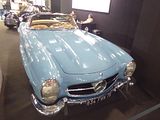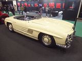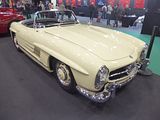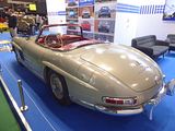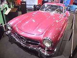 Known under development as the W198, the first iteration of the SL-Class grand tourer was the fastest production car of its day. Introduced in 1954 as a two-seat coupé with distinctive gull-wing doors, it was later offered as an open roadster. Built by Daimler-Benz AG, the direct fuel injected production model was based on the company’s highly successful yet somewhat less powerful carburettor overhead cam straight 6 1952 racer, the W194. The idea of a toned-down Grand Prix car tailored to affluent performance enthusiasts in the booming post-war American market was suggested by Max Hoffman. Mercedes accepted the gamble and the new 300 SL – 300 for its 3.0 litre engine displacement and SL for Sport Leicht (Sport Light) – was introduced at the 1954 New York Auto Show rather than the Frankfurt or Geneva gatherings company models made their usual debuts. Immediately successful and today iconic, the 300 SL stood alone with its distinctive doors, first-ever production fuel injection, and world’s fastest top speed. Even with the upward opening doors, the 300 SL had an unusually high sill, making entry and exit from the car’s cockpit problematic. A steering wheel with a tilt-away column was added to improve driver access. The 300 SL’s main body was steel, with aluminium bonnet, doors and boot lid. It could also be ordered with an 80 kg (180 lb) saving all-aluminium outer skin at tremendous added cost; just 29 were made. Like the W194, the 300 SL borrowed its 3.0 litre overhead cam straight-6 from the regular four-door 300 (W186 “Adenauer”) luxury tourer introduced in 1951. Featuring an innovative diagonal aluminium head that allowed for larger intake and exhaust valves, it was canted to the right at forty-five-degrees to fit under the SL’s considerably lower bonnet line. In place of the W194’s triple two-barrel Solex carburettors, a groundbreaking Bosch mechanical direct fuel injection was installed, boosting power almost 25% over the Grand Prix car’s. Derived from the DB 601 V12 used on the Messerschmitt Bf 109E fighter of World War II, it raised output from 175 hp to 215 hp, almost double that of the original Type 300 sedan’s 115 hp. An optional, even more powerful version, with radical camshaft developed 240 hp @ 6100 rpm and a maximum torque of 217 lb⋅ft @ 4800 rpm, but was rough for city use. The result was a top speed of up to 260 km/h (160 mph) depending on gear ratio and drag, making the 300 SL the fastest production car of its time. However, unlike today’s electrically powered fuel injection systems, the 300 SL’s mechanical fuel pump would continue to inject gasoline into the engine during the interval between shutting off the ignition and the engine’s coming to a stop; this unburned gasoline washed lubricating oil from the cylinder walls, which not only left them unprotected in affected areas during start-up but would dilute the engine’s entire oil supply if the car was not driven hard or long enough to reach a sufficient temperature to evaporate the fuel out of the oil. Exacerbating the problem was the engine’s large racing-oriented oil cooler and enormous 10 litre oil capacity, which virtually guaranteed the oil would not get hot enough. In practice, many owners would block off airflow through the oil cooler and stick rigidly to the appropriately low 1,000 mile recommended oil change interval. An auxiliary fuel pump provided additional fuel for extended high speed operation or cold starts; overuse would also lead to dilution of the oil., Clutch operation was initially very heavy, remedied by an improved clutch arm helper spring which reduced pedal force. From March 1963 to the end of production later that year, a light alloy crankcase was used on a total of 209 vehicles. Aerodynamics played an important role in the car’s speed, with Mercedes-Benz engineers placing horizontal “eyebrows” over the wheel openings to reduce drag. Unlike many cars of the 1950s, steering was relatively precise and the four-wheel independent suspension allowed for a reasonably comfortable ride and markedly better overall handling. However, the rear swing axle, jointed only at the differential, not at the wheels themselves, could be treacherous at high speeds or on imperfect roads due to extreme changes in camber. The enormous fuel tank capacity also caused a considerable difference in handling depending on the quantity of fuel on board. More than 80% of the vehicle’s total production of approximately 1400 units were sold in the US, making the Gullwing the first Mercedes-Benz widely successful outside its home market and thoroughly validating Hoffman’s prediction. The 300 SL is credited with changing the company’s image in America from a manufacturer of solid but staid luxury automobiles to one capable of rendering high-performance sports cars. It should be noted initial sales were sluggish due to many things, of which the price was one. Initial prices were about $6,400, a new Chevrolet Bel-Air could be purchased for $1,700 in the same year. Then there were few mechanics, even at the dealers, who understood the fuel injection system enough to do repairs. Nonetheless, 1400 were built by 1957, at which point Mercedes introduced a roadster version which was broadly similar, but with conventional doors. It was produced until 1963, and achieved sales of 1858 units.