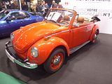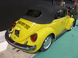 Production of an open-topped Type 1 Beetle Cabriolet began in 1949. The convertible was more than a Beetle with a folding top. To compensate for the strength lost in removing the roof, the sills were reinforced with welded U-channel rails, a transverse beam was fitted below the front edge of the rear seat cushion, and the side cowl-panels below the instrument panel were double-wall. In addition, the lower corners of the door apertures had welded-in curved gussets, and the doors had secondary alignment wedges at the B-pillar. The top was cabriolet-style with a full inner headliner hiding the folding mechanism and crossbars. In between the two top layers was 1 in (25 mm) of insulation. The rear window was tempered safety glass, and after 1968, heated. Due to the thickness of the top, it remained quite tall when folded. To enable the driver to see over the lowered top, the inside rearview was mounted on an offset pivot. By twisting the mirror 180 degrees on a longitudinal axis, the mirror glass would raise approximately 2 in (5.1 cm). The convertible was generally more lavishly equipped than the sedan with dual rear ashtrays, twin map pockets, a visor vanity mirror on the passenger side, rear stone shields, and through 1969, wheel trim rings. Many of these items did not become available on other Beetles until the advent of the optional “L” (Luxus) Package of 1970. After a number of stylistic and technical alterations made to the Karmann cabriolet, corresponding to the many changes VW made to the Beetle throughout its history, the last of 331,847 cabriolets came off the production line on 10 January 1980.