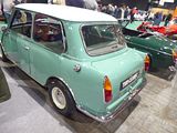 Released in 1961 as more luxurious versions of the Mini, both the Wolseley Hornet and the Riley Elf had longer, slightly finned rear wings and larger boots that gave the cars a more conventional three-box design. The wheelbase of the Elf and Hornet remained at 2,036 mm (80.2 in), whereas the overall length was increased to 3.27 m (10.7 ft). This resulted in a dry weight of 638 kg (1,407 lb)/642.3 kg (1,416 lb) (rubber/hydrolastic suspension) for the Elf and 618 kg (1,362 lb)/636.4 kg (1,403 lb) for the Hornet. Front-end treatment, which incorporated each marque’s traditional upright grille design (the Hornet’s grille with a lit “Wolseley” badge), also contributed to a less utilitarian appearance. The cars had larger-diameter chrome hubcaps than the Austin and Morris Minis, and additional chrome accents, bumper overriders and wood-veneer dashboards. The Riley was the more expensive of the two cars. The name “Wolseley Hornet” was first used on 1930s saloon, coupé, sports and racing cars, while the name “Elf” recalled the Riley Sprite and Imp sports cars, also of the 1930s (Riley’s first choice of name “Imp” could not be used as Hillman had registered it). The full-width dashboard was a differentiator between the Elf and Hornet. This dashboard was the idea of Christopher Milner the Sales Manager for Riley. Both the Riley Elf’s and Wolseley Hornet’s bodies were built at Fisher & Ludlow under their “Fisholow” brandname. Plates in the engine compartment on the right side fitch plate bear evidence of this speciality. Very early Mark I versions of both cars (e.g. press photo of 445MWL) had no overriders on the bumpers and a single piece front wing (A-panel and wing in one piece, no outside seam below scuttle panel) that was soon given up again, allegedly due to cost. The Elf’s and Hornet’s special bumper overriders first appeared in 1962. Early production Mark I’s also had a combination of leather and cloth seats (Elf R-A2S1-101 to FR2333, Hornet W-A2S1-101 to FW2105) whereas all later models had full leather seats. Mark I models were equipped with single leading shoe brakes on the front. In 1966 the Heinz food company commissioned, from Crayford Convertibles (Crayford Engineering), 57 convertible Hornets to be given as prizes in a UK competition. Many are still on the road as of 2020. Both the Elf and the Hornet went through three engine versions. Initially, they used the 848 cc 34 bhp engine (engine type 8WR) with a single HS2 carburettor, changing to a single HS2 carburettor 38 bhp version of the Cooper’s 998 cc power unit (engine type 9WR) in the Mark II in 1963. This increased the car’s top speed from 71 to 77 mph (114 to 124 km/h). Therefore, Mark II cars also came with increased braking power in the form of front drum brakes with twin leading shoes to cope with the increased power output. Both Mark I and Mark II featured four-speed gearboxes (three synchromesh gears) with the original, long gear lever, a.k.a. “magic wand” type. Automatic gearboxes became available on the Mark II in 1965 as an option. The Mark III facelift of 1966 brought wind-up windows and fresh-air fascia vents. Concealed door hinges were introduced two years before these were seen on the mainstream Mini. The gear selecting mechanism was updated to the “Cooper” type, (which also gave a welcome increase in engine location due to the remote housing extension being directly bolted onto the back of the differential housing) as seen on Mini 1000 cars of the time. The 850s retained the “magic wand”. Automatic gearboxes were available to the Mark III in 1967 again. Full-four synchromesh gearing was eventually introduced during 1968. 30,912 Riley Elfs and 28,455 Wolseley Hornets were built. Production of both models ceased in late 1969.