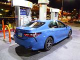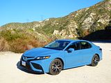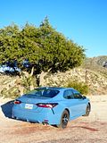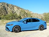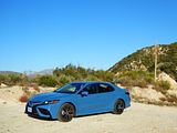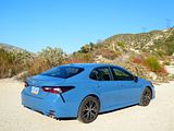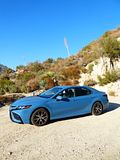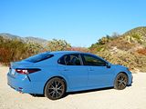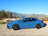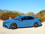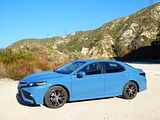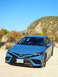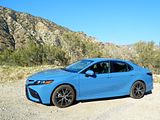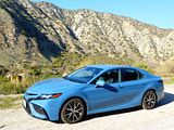 For nearly twenty years, from 2001 to 2020, the Toyota Camry was the best selling car in the massive US market, and although it has now dropped several places down the charts, dethroned by the RAV4 just as its arch rival, the Honda Accord has lost out to the CR-V, it remains the biggest seller in the full-size sedan market, with around 313,800 of them and a further 46,400 Hybrid versions finding a home in 2021. The latest version of the Camry, the eighth generation since the model name debuted in 1983, was premiered at the 2017 North American Auto Show in Detroit, with sales starting in the summer of that year. Toyota did not deviate much from the formula of the preceding 34 years, so this is an utterly conventional three box saloon with front wheel drive, focused on ease of use and dependability rather than thrills and excitement. The eighth generation car did look really quite different from its predecessor, and Toyota even went to the expense of producing different front end designs for the different trim versions, as well as different rear bumpers for the more sporting trims. The new car was based on an-new platform, and indeed, it was said that the only parts carried over were the large Toyota badges used on the front and back of the car. This version of the Camry introduced a number of new technologies including a new Linux-based and more easily customisable Entune 3.0 infotainment platform as well as including a package of the latest ADAS safety systems. The Camry used to be the doyen of the rental car fleets, but there have been far fewer of these eighth generation cars on offer, so it has taken until now for me to get to test one and by now there has even been the usual mid-cycle refresh that came in 2020. I do have to admit that as previous Camry models were so anodyne to drive, I had not been looking that hard for one, but when I had to return to LAX following an issue with the tyre pressure system in a Buick Encore, when I surveyed a relatively empty facility, a brand new 2023 model year Camry SE in a very distinctive colour that Toyota calls Cavalry Blue was the car I selected. My time with this car was going to be a bit limited as it was late morning by the time I collected it and the booking was only for one day. Here is what I thought: