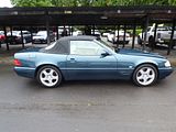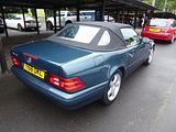 Designed in 1984, and launched in 1989, the R129 was based on the shortened floorpan of the Mercedes-Benz W124 and featured many innovative details for the time, for instance electronically controlled damping (Adaptive Damping System ADS, optional) and a hidden, automatically extending roll-over bar. The R107’s somewhat dated rear suspension with semi-trailing arms gave way to a modern multi-link axle. The number of standard features was high, with electric action for the windows, mirrors, seats and hydraulic convertible top. This car has the distinction of being the first passenger vehicle to have seat belts integrated into the seats as opposed to anchoring to the floor, B-pillar, and transmission tunnel. Initially, there were three different engines available: 300 SL with a M103 3.0 L 12-valve SOHC I6 (188 bhp), a 300 SL-24 with a M104 3.0 L 24-valve DOHC I6 (228 bhp) and the 500 SL with a M119 5.0 L 32-valve DOHC V8 (322 bhp) . These were joined in July 1992 by the 600 SL with a M120 6.0 L 48-valve DOHC V12 (389 bhp). There was a choice of 5-speed manual or 4–5 speed automatic for the six-cylinder cars; the V8 and V12 could only be ordered with a 4-speed automatic gearbox. In autumn 1993 Mercedes-Benz rearranged names and models. Also, the 300 SL and 300 SL-24 were respectively replaced by: SL 280 with a M104 2.8 L 24-valve DOHC I6 (190 bhp) and the SL 320 with a M104 3.2 L 24-valve DOHC I6 (228 bhp). Only the 280 was available with a manual gearbox. SL 500 and 600 continued with their respective engines. Starting in 1993, the cars were re-designated. For example, 500 SL became SL 500. Starting in model year 1994, Mercedes-Benz offered special SL models from time to time, such as the Mille Miglia edition cars of model year 1994 or the SL edition of model year 2000. 1994 cars had minor updates for the car and then in 1995 there was a minor facelift for the car, with the front fender vents updated to only 2 rounded slots, rather than 3 squared slots, and bumpers in body colour. The V8 and V12s were upgraded to 5 speed electronic transmission, the previous transmission was hydraulic 4-speed. A second facelift occurred in 1998 with many detailed changes applied, including new external mirrors, 17″ wheels and new bumpers. Also new were the engines, a SL 280 with a M112 2.8 L 18-valve SOHC V6 (201 bhp); SL 320 with a M112 3.2 L 18-valve SOHC V6 (221 bhp) and a SL 500 with a M113 5.0 L 24-valve SOHC V8 (302 bhp). The V12 engine remained unchanged. The car was replaced by the R230 generation SL in 2001, after 213,089 had been built.
