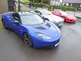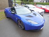 Developed under the project name Project Eagle, this car was launched as the Evora on 22 July 2008 at the British International Motor Show. The Evora is based on the first all-new vehicle platform from Lotus Cars since the introduction of the Lotus Elise in 1995 (the Exige, introduced in 2000, and the 2006 Europa S are both derivatives of the Elise. Evora was planned to be the first vehicle of three to be built on the same platform and was the first product of a five-year plan started in 2006 to expand the Lotus line-up beyond its track-specialised offerings, with the aim of making Evora a somewhat of a more practical road car that would appeal to the mainstream. As such it is a larger car than recent Lotus models Elise and its derivatives (Exige, Europa S, etc.), with an unladen weight of 1,383 kg (3,049 lb). It is currently the only Lotus model with a 2+2 configuration, although it is also offered in a two-seater configuration, referred to as the “Plus Zero” option. It is also the only 2+2 mid engined coupé on sale. The interior is larger to allow taller persons of 6’5″ to fit. The cooled boot behind the engine is large enough to fit a set of golf clubs, although Lotus Design Head Russell Carr denies that this was intentional. Lotus intends Evora to compete with different market sectors including the Porsche Cayman. The name “Evora” keeps the Lotus tradition of beginning model names with an “E”. The name is derived from the words evolution, vogue, and aura. and it of course sounds similar to Évora, which is the name of a Portuguese city and UNESCO World Heritage Site. Sales started in summer 2009, with an annual target of 2000 cars per year, with prices between £45,000 and just over £50,000. and in America from the beginning of 2010. The Evora received several accolades at its launch from the British motoring press, including: Britain’s Best Driver’s Car 2009 from Autocar and Car of the Year 2009, from Evo. Sales, however, were far from target, as the car was seen as too costly. A more powerful Evora S was launched in 2010 with a supercharged equipped 3.5-litre V6. A facelifted and more powerful Evora 400 model was unveiled at the 2015 Geneva Motor Show.