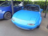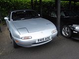 The MX-5 was unveiled at the Chicago Auto Show on February 10, 1989, with a price tag of US$14,000. The MX-5, with production code NA, was made available for delivery to buyers worldwide in the following dates: May 1989 (as a 1990 model) in the US and Canada; September 1, 1989 in Japan; and 1990 in Europe. An optional hardtop was made available at the same time, in sheet moulding compound (SMC). Demand initially outstripped production, fueled by enthusiastic press reviews. In Japan, the car was not badged as a Mazda, as the company was in the process of launching different marques for deluxe models, similar to Nissan’s Infiniti, Honda’s Acura and Toyota’s Lexus. Instead, the Mazda MX-5 was sold as the Eunos Roadster, and was joined by the MX-3/AZ-3/Eunos Presso (based on Japanese Mazda dealerships). The exterior dimensions and the engine displacement were also in compliance with Japanese Government compact car regulation. The body shell of the NA was all-steel with a lightweight aluminium bonnet. Overall dimensions were 3,970 mm (156 in) in length, 1,675 mm (65.9 in) in width, and 1,235 mm (48.6 in) in height. Without options, the NA weighed only 980 kg (2,160 lb). It had a drag coefficient of Cd=0.38. Suspension was an independent double wishbone on all four wheels, with an anti-roll bar at the front and rear. Four-wheel disc brakes, ventilated at the front, were behind alloy wheels with 185/60HR14 radial tyres. The base model came with stamped steel wheels from the then-current 323/Protege.The original MX-5, with standard manual transmission, came with a 1.6 L DOHC inline four-cylinder engine, producing 115 bhp at 6,500 rpm, and 136 Nm (100 lb/ft) of torque at 5,500 rpm. The engine employs an electronic fuel injection system using a vane-type air flow meter and an electronic ignition system with a camshaft angle sensor instead of a distributor. This engine, codenamed B6ZE(RS), was specifically designed for the MX-5 and featured a lightened crankshaft, flywheel, and aluminium sump with cooling fins. An MX-5 with the optional automatic transmission had its 1.6L engine tuned to develop peak torque at lower rpm’s (136 Nm, 100 lb/ft at 4000 rpm) to better mate with the automatic transmission gearing and torque requirements. This tuning resulted in a lower peak power of 105 bhp at 6500 rpm. The standard transmission was a five-speed manual, derived from the one used in the Mazda 929/Luce (also rear-wheel drive) The gear shift was the subject of close attention during development, with engineers told to make it shift in as small a gear pattern as possible and with minimal effort. In Japan and the US, an optional automatic transmission was also offered. The Japanese and American markets also received an optional viscous limited-slip differential, although it was only available for cars with a manual transmission. To achieve the low introductory price, the base model was stripped. It had steel wheels, manual steering, roll-up windows, and no stereo or air-conditioning. Power steering, air-conditioning, and stereo were added as standard equipment in later years. The NA could reach 60 mph in 8.3 seconds and had a top speed of 203 km/h (126 mph) although Japanese market Eunos models were limited to 180 km/h (110 mph). This first generation of Miata (often referred to as the NA) included a special Limited Edition of 2000 examples in 1991, produced in British racing green with the first use of tan interior, to celebrate the highly successful launch of the MX-5 in the UK. These have a numbered brass plaque on the Windshield Frame and on the front of the Owners Book, and are fitted with alloy wheels from MSW (Mazda Sports Workshop) which are often mistaken for BBS, but which are entirely unique to this model. The NA with an automatic transmission reached 60 mph in 9.9 seconds and had a top speed of 181 km/h (112 mph). In 1993, 1,500 LE (Limited Edition) cars were produced. This model featured red leather interior, upgraded stereo, Nardi shift knob, leather-wrapped steering wheel, cruise control, limited-slip differential, power windows, power mirrors, power steering, air conditioning, BBS wheels, Bilstein shocks, front and rear spoilers, ABS brakes, stainless sill plates, and Harley style peanut tank door speaker trim. All 1993 LE cars came in black. For the 1994 model year, the first-generation MX-5 was freshened with the introduction of the more powerful 1,839 cc BP-ZE engine, dual airbags placed in a redesigned dashboard, the addition of a Mazda badge on the front fascia in the US and a limited-slip differential in some markets. The chassis was substantially braced to meet new side-impact standards, most visibly by adding a “track bar” between the seatbelt towers inside the car, but also to the front and rear subframes. Also, 1994 and 1995 were the only years in which Mazda offered a light metallic blue paint (Laguna Blue Mica), making these cars rare collectors cars to some. 1994 also saw the introduction of the “R” package, a sport-themed package with Bilstein shocks, stiffer sway bars, retuned springs, subtle front and rear underbody spoilers, and a Torsen LSD. Air conditioning was optional, but the “R” package was not available with power steering, leather, or an automatic transmission. It can also be identified by a red Miata badge on the rear instead of the usual black. No body style changes were made, however. Halfway through the 1997 model year the hazard light button was changed to a black button with red symbol as opposed to the earlier red button with white symbol. The new 1,839 cc engine produced 129 bhp at 6,500 rpm and 149 Nm (110 lb/ft) of torque at 5,500 rpm, which was then increased to 133 bhp at 6,500 rpm and 155 Nm (114 lb/ft) of torque at 5,500 rpm for the 1996 model year. The base weight increased to 990 kg (2,180 lb). Performance was thus improved slightly, because the additional weight was more than offset by the extra power. In some markets such as Europe