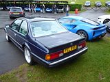 The first car to bear the 6 Series nomenclature was the E24, which was launched in 1976, as a replacement for the E9 model 3.0 CS and CSL coupés first produced in 1965. The 3.0 CS was almost changed by adding a few centimeters in height to make it easier for customers to get into the car. However, Bob Lutz rebelled against the decision and rough drafted an alternative version that soon became the 6 series. Production started in March 1976 with two models: the 630 CS and 633 CSi. Originally the bodies were manufactured by Karmann, but production was later taken in-house to BMW. In July 1978 a more powerful variant, the 635 CSi, was introduced that featured as standard a special close-ratio 5-speed gearbox and a single piece black rear spoiler. The bigger bore and shorter stroke facilitated max 218 hp at 5200rpm and a better torque curve. For the first year, the 635 CSi was offered in three colours (Polaris, Henna Red, Graphite), and could also be spotted by the front air dam that did not have attached fog lights. These simple cosmetic changes reportedly worked to reduce uplift on the car at high speeds by almost 15% over the non-spoiler body shape. This early model shared suspension components with the inaugural BMW 5-series, the E12. In 1979 the carburettor 630 CS was replaced with the 628 CSi with its fuel injected 2.8 litre engine taken from the BMW 528i. In 1980 the 635 CSi gained the central locking system that is also controlled from the boot. Also, the E24 body style converted from L-jetronic injection to a Bosch Motronic DME. In 1982 (Europe) and 1983 (US), the E24 changed slightly in appearance, with an improved interior and slightly modified exterior. At the same time, the 635 CSi received a new engine, a slightly smaller-bored and longer-stroked 3430 cc six to replace the former 3453 cc engine and became available with a wide-ratio 5-speed manual or an automatic. This slight change was in fact a major change as pre-1982 cars were based on the E12 5-series chassis; after mid-1982, E24s shared the improved E28 5-series chassis. The only parts that remained the same were some of the exterior body panels. E24s produced after June 1987 came with new, ellipsoid headlamps which projects beam more directly onto road surface (newly introduced E32 7-series also sporting them). The sleeker European bumpers were also discontinued. Previous cars had either a European-standard bumper or a larger, reinforced bumper to meet the US standard requiring bumpers to withstand impact at 5 mph without damage to safety-related components. 1989 was the last year for the E24 with production stopping in April. The E24 was supplanted by the considerably heavier, more complex, and more exclusive 8 Series. BMW Motorsport introduced the M 635 CSi in Europe at the Frankfurt Motor Show in 1983. It is essentially an E24 powered by the powerplant of the BMW M1 – the M88 with 286 PS). Most of the cars were equipped with special metric 415 mm diameter wheels requiring Michelin TRX tyres. A catalysed, lower compression ratio version of the car with the S38 engine (260 PS ) was introduced in the U.S. in 1987. All M6 cars came standard with a 25% rear limited slip differential. U.S. models included additional comforts that were usually optional on models sold in Europe such as Nappa leather power seats and a dedicated rear A/C unit with a centre beverage chiller. 4,088 M635CSi cars were built between 1983 and 1988 with 1,767 U.S. bound, badges as the M6.