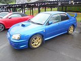 Subaru introduced the “New Age” Impreza, the second generation car, to Japan in August 2000, and it arrived in Europe towards the end of that year. Larger in size compared to the previous iteration, the sedan increased its width by 40 millimetres (1.6 in), while the wagon notably increased by just 5 millimetres (0.2 in)—placing the two variants in different Japanese classification categories. The coupe body style from the first generation did not reappear for the new series, and the off-road appearance package that included contrasting-coloured bumpers did carry over forward. Marketed as a separate model line, this North America-only variant was, as before, badged the Outback Sport. Naturally aspirated flat-four (boxer) engines comprised the 1.5-litre EJ15, the 1.6-litre EJ16, the 2.0-litre EJ20, and the 2.5-litre EJ25. Turbocharged versions of the 2.0- and 2.5-litre engines were offered in the WRX and WRX STI models. STI models featured a more powerful 2.0-litre (2.5-litre outside of the Japanese market) turbocharged engine. WRX models featured a 2.0-litre turbocharged boxer engine until 2005, after which they switched to the 2.5-litre turbocharged engine. As with the first generation, the turbocharged STI variants were available in numerous specifications with a myriad of limited edition variants sold. The bug-eyed styling was not well received, and Subaru had two further attempts at the front end, neither of which was entirely successful, either, but enthusiasts were happy to overlook the gawky looks because the way the car drove. Subaru issued yearly updates to the STI, tweaking cosmetics and equipment levels, and also improving performance and handling. The car was replaced in 2007 by the third generation Impreza, widely regarded as inferior in many ways to this version.