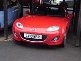 The Mazda MX-5 (NC) is the third generation of the Mazda MX-5 manufactured from 2005 to 2015. At its introduction in 2005, it won the Car of the Year Japan Award and made Car and Driver’s 10Best list from 2006 to 2013. The NC is the first MX-5 generation to feature a retractable hardtop variant, with its roof being able to fold and unfold in 12 seconds without sacrificing trunk space. The exterior styling by Yasushi Nakamuta resembled the original design, but unlike the update from NA to NB, which was mostly a nose/tail/interior change, the NC shares no components with the NB, except for the fender-mounted turn signal lights on non-U.S. models (and rear differential internals). The chief designer of this model generation was Moray Callum. The 2003 Mazda Ibuki concept served as a preview of the new model. The suspension changed from a four-wheel double wishbone setup to a front wishbone/rear multilink setup, shared with the Mazda RX-8. Technologies including traction control and stability control were added to increase driveability. According to Car and Driver, the NC has a skidpad number of 0.90g. For the U.S., the engine was the 16-valve, 2.0 L MZR LF-VE DOHC I4, producing 170 bhp and 190 Nm (140 lb/ft) of torque coupled to either a 5-speed or a 6-speed manual transmission or 158 bhp with the optional 6-speed automatic transmission. A limited-slip differential was available with the 6-speed option. In Australia, the 2.0 L MZR was offered, rated at 158 bhp and 188 N⋅m (139 lb/ft) of torque and the 6-speed transmission and LSD are standard. In Europe, two engines were offered: the 2.0 L MZR LF-VE rated at 158 bhp and 188 Nm (139 lb/ft) of torque, coupled to the 6-speed manual transmission; and a new 1.8 L MZR L8-VE, rated at 126 bhp and 167 Nm (123 lb/ft), coupled to the 5-speed manual transmission. A six-speed automatic transmission, with steering wheel mounted paddle shifters, was optional. A test by Car and Driver magazine revealed a 0-60 mph time of 6.5 s for the 2.0 L U.S.-spec NC. Manufacturer figures for the European-spec model are: 0-100 km/h (62 mph) in 9.4 s for the 1.8 and 7.9 s for the 2.0. As of this generation, the car no longer complies with Japanese law’s maximum exterior width dimension for the mid-size vehicle tax class, making Japanese buyers liable for additional costs for ownership. In July 2006, Mazda debuted a Power Retractable Hard Top (PRHT) version of the NC with a two-piece folding hardtop, named MX-5 Roadster Coupé in Europe, Roadster Power Retractable Hard Top in Japan, and MX-5 Miata Power Retractable Hard Top in the U.S. and Canada. Designed by Webasto and constructed of polycarbonate, the top requires 12 seconds to raise or lower, and the first models were delivered to customers in late August 2006. The hardtop adds 36 kg (79 lb) to the weight of a comparably equipped soft-top, without diminishing trunk space when retracted. The PRHT omits the soft-top’s storage compartments behind the seats to accommodate the folding roof mechanism. Performance times are slightly affected with the weight increase, with the 0-100 km/h (62 mph) time increased to 9.6 s for the 1.8 and 8.2 seconds for the 2.0. Thanks to better aerodynamics, though, top speed is increased from 196 km/h (121.8 mph) to 200 km/h (124.3 mph) for the smaller-engined model and from 210 km/h (130 mph) to 215 km/h (134 mph) for the 2.0. These figures are for the European- versions. The MX-5 facelift was unveiled at the 2008 Paris Motor Show and Science Museum in London, and later at the 2009 Chicago Auto Show. The Japanese model went on sale on December 9, 2008 at Mazda and Mazda Anfini dealers. Major changes concern the restyled front which now incorporates elements from Mazda’s newer models like the larger grille and new head and fog lights. Further restyled elements include the side skirts, rear bumper and the tail lights. The soft-top Touring and Grand Touring models feature a mesh grille bordered by a chrome frame. The hardtop Roadster Coupe now features a mesh grille bordered by a chrome frame and chrome elements inside the headlamps and outer door handles. The instrument panel gained darker features and redesigned graphics for the gauges. To create more leg space in the cabin, a protrusion from the door pockets was eliminated. The 2.0 L; I4 engine was rated 167 bhp at 7,000 rpm and 190 Nm (140 lb/ft) at 5,000 rpm for the 5-speed manual transmission, 158 bhp at 6,700 rpm with the fuel cut-off at 7,200 rpm and 190 Nm (140 lb/ft) at 5,000 rpm for the automatic transmission. Engine redline was raised by 500 rpm to 7,200 rpm in manual model and fuel cut at 7,500 rpm. The suspension and gearbox have been fine-tuned; with the latter offering smoother shifts and an automatic transmission will be introduced in Europe for the first time.