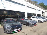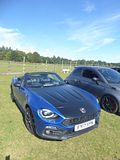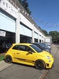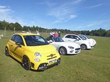 Most of the Abarth models here were what is known as the Series 4 version of the familiar 595, which reached the markets in the middle of 2016. After rumours had circulated all winter following the launch of the facelifted Fiat 500 last year, Abarth finally unveiled the Series 4 at the end of May 2016. Initially, we were told that the cars would not be available in the UK until September, but that came forward somewhat, with dealers all receiving demo cars in June, and the first customers taking delivery in July. Three regular production versions of both the closed car and the open-topped C were initially available, all badged 595, and called Custom, Turismo and Competizione, as before, though numerous limited edition models have since appeared and in most case disappeared. The most significant changes with the Series 4 are visual, with a couple of new colours, including the much asked for Modena Yellow and a different red, called Abarth Red, which replaces both the non-metallic Officina and – slightly surprisingly – the tri-coat pearlescent Cordolo Red. as well as styling changes front and rear. The jury is still out on these, with many, me included, remaining to be convinced. At the front, the new air intake does apparently allow around 15 – 20 % more air in and out, which will be welcome, as these cars do generate quite a lot of heat under the bonnet. Competizione models for the UK retain the old style headlights, as they have Xenon lights as standard, whereas the Custom and Turismo cars have reshaped units. At the back, there are new light clusters and a new rear bumper and diffuser. Inside, the most notable change is the replacement of the Blue & Me system with a more modern uConnect Audio set up, which brings a new colour screen to the dash. Mechanically, there is an additional 5 bhp on the Custom (now 145) and Turismo (now 165 bhp) and the option of a Limited Slip Diff for the Competizione, which is likely to prove a popular option. Details of the interior trim have changed, with a filled-in glovebox like the US market cars have always had, and electric windows switches that are like the US ones, as well as a part Alcantara trim to the steering wheel in Competizione cars. These cars have now been on offer for eight years and with Abarth sales on the rise, it was no surprise that they were particularly well represented here.