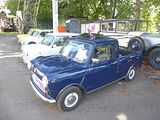 Without doubt, the rarest version of the classic Issigonis-designed Mini is the Pickup, as seen here. Introduced in 1961, at the same time as the Van, whose longer platform this version shared, there was an open-top rear cargo area and a drop down tailgate. The factory specified the weight of the Pick-up as less than 1,500 lb (680 kg) with a full 6 gallon tank of fuel. As with the Van, the Pick-up had stamped metal slots for airflow into the engine compartment. The Pickup was basic, although the factory brochure described a “fully equipped Mini Pick-up is also available which includes a recirculatory heater.” Passenger-side sun visor, seat belts, laminated windscreen, tilt tubes and cover were also available at extra cost. Equipment levels improved gradually over time. Like the van, the Pick-up was renamed as the Mini 95 in 1978. Production ceased in 1983 by which time 58,179 Mini Pick-up models had been built, barely 10% of the number of Vans made.