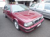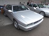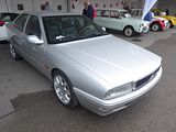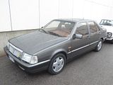First shown at the Turin Auto Show in 1986, the Lancia Thema 8·32 (“8” standing for the number of cylinders and “32” for the number of valves) was assembled at Lancia’s S. Paolo plant in Turin. It used a 2,927 cc, Tipo F105L, Ferrari V8. This engine was based on the unit used in the Ferrari 308 and in the Ferrari Mondial Quattrovalvole, and some of the componentry was assembled by Ducati from castings made at Maranello. The engine differed from other Ferrari V8s of the time in that it was equipped with a cross-plane type crankshaft rather than the usual flat-plane crankshaft, smaller valves and different firing order: all this was to make the engine characteristics more suitable for a four-door luxury saloon. In non catalysed form the engine produced 215 PS at 6,750 rpm, and the car was capable of 0–100 km/h in 6.8 seconds and a top speed of 240 km/h (149 mph). Catalysed versions produce 205 PS which gave 0–100 km/h in 7.2 seconds and a top speed of 235 km/h (146 mph). The transmission was a 5-speed manual gearbox; there was no automatic option. The braking system used larger 294 mm vented front discs and the standard 251 mm rear ones from the other Themas. All 8·32s featured Bosch KE3 Jetronic fuel injection, ABS, ZF’s brand new Servotronic electronically controlled rack-and-pinion power steering (which varied steering wheel effort according to vehicle speed), and a retractable rear spoiler. The latter, designed to increase high speed stability, was controlled by the driver via a rotary switch on the right stalk. In closed position, it would fit flush with the boot lid. The tyres were specially developed 205/55 VR15 Goodyears on five-spoke 6J×15 alloy wheels. The car offered a handmade wood-and-Alcantara (or optional Poltrona Frau leather) interior, and was complete with similar luxury equipment as LX versions of the Thema. Stitched leather covered the entire dashboard, the steering wheel (including centre), gear and handbrake levers and booths, centre console, door panels and sun visors, while the headlining was Alcantara. A bespoke dashboard fascia housed two main instruments, six small auxiliary gauges, and triple round air conditioning vents. Like the door cappings and the lids concealing the radio and ashtray, it was veneered in matte varnish burr wood. The instrumentation had black dials with yellow hands and markings; it included water thermometer, oil thermometer and pressure gauge, and check panels for the lights and the drivetrain. The seats (and matching door panel inserts) were trimmed in beige or date brown Alcantara as standard, with black or brown leather was an optional extra. Brown interiors got colour-matching switchgear, carpets and trim. Irrespective of interior selection, Thema 8·32 buyers could choose from five paint colours, all metallics: Blizzard Blue, Winner Red, Quartz Grey, Reflex Green and Black. A double hand-painted pinstripe (the upper matched to body colour, the lower yellow) ran along the sides and the rear of the car. Besides the paint scheme, retractable spoiler and wheels, the only exterior details setting the 8·32 apart from other Themas were yellow “8·32” badges, a silver eggcrate-type grille, and twin exhaust outlets. Some notable options were automatic climate control, electrically actuated sunroof, provision for a car phone in the front armrest, and rear individual power seats. In 1988 the 8·32 received series 2 updates like other Themas, including new lights front and rear, a smaller grille badge, removal of model badging at the rear and on the side skirts, and the new side rubbing strips (previously absent on this model). There were no third series 8·32s. This version of the Thema was produced in limited numbers, with 2370 Series 1 built between 1986 and 1988 and 1601 Series 2 built between 1989 and 1992. All were left-hand drive, although one Thema 8·32 was converted to right hand drive by TAK Motor Co. in South Africa in 1987 for the MD of TAK. The Thema 8·32’s key competitors were some of the fastest saloon models of the late 1980s including the Audi 100 Quattro, BMW M535i, Ford Sierra RS Cosworth, Saab 9000 2.3 Turbo S, and the Vauxhall Lotus Carlton/Opel Lotus Omega. Road & Track described the 8·32 as one of the “one of the weirder sleepers to come out of the 1980s”. Towards the end of his life, Enzo Ferrari owned an 8·32 as his personal transport.