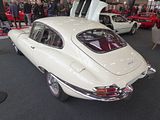The Series 1 E Type was introduced, initially for export only, in March 1961. The domestic market launch came four months later in July 1961. The cars at this time used the triple SU carburetted 3.8-litre six-cylinder Jaguar XK6 engine from the XK150S. Earlier built cars utilised external bonnet latches which required a tool to open and had a flat floor design. These cars are rare and more valuable. After that, the floors were dished to provide more leg room and the twin bonnet latches moved to inside the car. The 3.8-litre engine was increased to 4,235 cc in October 1964. The 4.2-litre engine produced the same power as the 3.8-litre (265 bhp) and same top speed (150 mph), but increased torque approximately 10% from 240 to 283 lb/ft. Acceleration remained pretty much the same and 0 to 60 mph times were around 6.4 seconds for both engines, but maximum power was now reached at 5,400 rpm instead of 5,500 rpm on the 3.8-litre. That all meant better throttle response for drivers that did not want to shift down gears. The 4.2-litre’s block was completely redesigned, made longer to accommodate 5 mm (0.20 in) larger bores, and the crankshaft modified to use newer bearings. Other engine upgrades included a new alternator/generator and an electric cooling fan for the radiator. Autocar road tested a UK spec E-Type 4.2 fixed head coupé in May 1965. The maximum speed was 153 mph, the 0–60 mph time was 7.6 seconds and the 1⁄4 mile from a standing start took 15.1 seconds. They summarised it as “In its 4.2 guise the E-Type is a fast car (the fastest we have ever tested) and offers just about the easiest way to travel quickly by road.”. Motor magazine road tested a UK spec E-Type 4.2 fixed head coupé in Oct 1964. The maximum speed was 150 mph, the 0–60 mph time was 7 seconds and the 1⁄4 mile time was 14.9 seconds. They summarised it as “The new 4.2 supersedes the early 3.8 as the fastest car Motor has tested. The absurd ease which 100 mph can be exceeded in a 1⁄4 mile never failed to astonish. 3,000 miles (4,828 km) of testing confirms that this is still one of the world’s outstanding cars”. All E-Types featured independent coil spring rear suspension designed and developed by R J Knight with torsion bar front ends, and four wheel disc brakes, in-board at the rear, all were power-assisted. The Coventry engineers spared nothing with regards to high automotive technology in braking. Like several British car builders of the middle and late 1950s, the four-wheel disc brakes were also used in that era by Austin-Healey, MG,putting the British far ahead of Ferrari, Maserati, Alfa Romeo, Porsche, and Mercedes-Benz. Even Lanchester tried an abortive attempt to use copper disc brakes in 1902. Jaguar was one of the first vehicle manufacturers to equip production cars with 4 wheel disc brakes as standard from the XK150 in 1958. The Series 1 (except for late 1967 models) can be recognised by glass-covered headlights (up to 1967), small “mouth” opening at the front, signal lights and tail-lights above bumpers and exhaust tips under the number plate in the rear. 3.8-litre cars have leather-upholstered bucket seats, an aluminium-trimmed centre instrument panel and console (changed to vinyl and leather in 1963), and a Moss four-speed gearbox that lacks synchromesh for first gear (“Moss box”) on all except very last cars. 4.2-litre cars have more comfortable seats, improved brakes and electrical systems, and,obviously, an all-synchromesh Jaguar designed four-speed gearbox. 4.2-litre cars also have a badge on the boot proclaiming “Jaguar 4.2 Litre E-Type” (3.8 cars have a simple “Jaguar” badge). Optional extras included chrome spoked wheels and a detachable hard top for the OTS. When leaving the factory the car was originally fitted with Dunlop 6.40 × 15-inch RS5 tyres on 15 × 5K wire wheels (with the rear fitting 15 × 5K½ wheels supplied with 6.50 X15 Dunlop Racing R5 tyres in mind of competition). Later Series One cars were fitted with Dunlop 185 – 15 SP41 or 185 VR 15 Pirelli Cinturato as radial ply tyres. A 2+2 version of the fastback coupé was added in 1966. The 2+2 offered the option of an automatic transmission. The body is 9 in (229 mm) longer and the roof angles are different. The roadster and the non 2+2 FHC (Fixed Head Coupé) remained as two-seaters. Less widely known, right at the end of Series 1 production, but prior to the transitional “Series 1½” referred to below, a small number of Series 1 cars were produced with open headlights. These Series 1 cars had their headlights modified by removing the covers and altering the scoops they sit in, but these Series 1 headlights differ in several respects from those later used in the Series 1½ (or 1.5), the main being they are shorter at 143 mm from the Series 1½ at 160 mm. Production dates on these machines vary but in right-hand drive form production has been verified as late as July 1968. They are not “rare” in the sense of the build of the twelve lightweights, but they are certainly uncommon; they were not produced until January 1967 and given the foregoing information that they were produced as late as July 1968, it appears that there must have been an overlap with the Series 1.5 production, which began in August 1967 as model year 1968 models. These calendar year/model year Series 1 E-Types are identical to other 4.2-litre Series 1 examples in every respect except for the open headlights; all other component areas, including the exterior, the interior, and the engine compartment are the same, with the same three SU carburettors, polished aluminium cam covers, center dash toggle switches, etc. Following the Series 1 there was a transitional series of cars built in 1967–68 as model year 1968 cars, unofficially called “Series 1½.” Due to American pressure the new features were not just open headlights, but also different switches (black rocker switches as opposed to the Series 1 toggle switches), de-