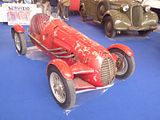 This is the 4CLT/48. The first variant of the 4CLT earned its “Sanremo” nickname from the first race for which it was entered: the 1948 San Remo Grand Prix. The name stuck, as Alberto Ascari took his 4CLT to victory in its maiden race appearance. A portent of things to come, Villoresi and Reg Parnell won five of the 1948 season’s remaining races. In the first year of the Formula One World Championship, a Sanremo scored what was to be the Maserati’s best Championship finish, when Louis Chiron took third place at his home Grand Prix: the 1950 Monaco Grand Prix. The last 4CLT variant to compete in the World Championship was a 4CLT/48 modified by the Arzani-Volpini team, that failed to even qualify for the 1955 Italian Grand Prix. For 1949, minor modifications to the brake drums, switching from vanes to slits for cooling, along with small changes to the cockpit control layout and a repositioned oil header-tank resulted in a car sometimes referred to as the 4CLT/49. It was never known as such by the factory. The Ascari/Villoresi/Parnell trio, joined by Juan Manuel Fangio and Toulo de Graffenried, took up where they had left off the previous season, winning nine of the first fifteen races of 1949, including de Graffenried’s victory in the British Grand Prix. However, the second half of the season only saw three further wins, as increasingly competitive Ferrari and Talbot cars squeezed out the Maseratis in most major races. 1950 saw the introduction of the FIA World Championship of Drivers. In response to improvements to the Alfa 158 and the already competitive Ferrari and Talbot, Maserati again upgraded the 4CLT’s engine. A multi-part crankshaft, lightened and balanced rods, a more powerful pair of superchargers and changes to the ignition timing took engine output up to a claimed 280 bhp. Coupled to shedding 10 kg (22 lb) from the car’s weight, this brought the Maserati up to near-Alfa levels of performance. Although moderately competitive in short runs, the final upgrades proved to be too much for the decade-old powerplant’s design and the 4CLT’s Grand Prix performance was hindered by engine failures. The season’s only Formula One wins came in non-Championship events. Fangio won the Pau Grand Prix on the same day as Parnell took the Richmond Trophy at Goodwood. David Hampshire won the Nottingham Trophy later in the year. Fangio also won the Formula Two Ramparts Grand Prix, at Angoulême, in a 4CLT chassis fitted with an A6GCM engine. The Milano team modified a 4CLT for use in 1950 and 1951, but without success. Also for 1951 B. Bira modified his ’49-spec 4CLT to accept a more powerful, 4,450 cc, naturally aspirated OSCA V12 engine. This engine developed around 300 bhp. With it Bira won the Goodwood race early in the season, but in its only World Championship appearance, at the 1951 Spanish Grand Prix, it retired on the first lap.