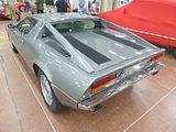 It was good to see the Bora here. Shortly after Citroën took a controlling interest in Maserati in 1968, the concept of a mid-engined two-seat sports car was proposed. Lamborghini and De Tomaso already had the Miura and Mangusta whilst Ferrari were known to be developing their own mid-engined contender. Initially known as Tipo 117 and later the Bora, the Maserati project got underway in October 1968 and a prototype was on the road by mid-1969. Shown in its final form at the Geneva Salon in March 1971, deliveries began before the end of the year. Maserati had developed a reputation for producing technologically out of date cars, but that changed with the Bora. A number of innovative features were introduced that distinguished the car from their previous offerings. Compared to other supercars it was civilised and practical, featuring a hydraulically powered pedal cluster that could be moved forward and backwards at the touch of a button and a steering wheel that could be tilted and telescoped, addressing the common problem of entering and exiting the vehicle common to all supercars. Most supercars offer little foot room and little to no provision for luggage, but the Bora has a full-size boot in the front of the vehicle, and was otherwise known as being much more civilised in comforts from its competitors, while still being rated at 171 mph by the Maserati factory. Unlike its competitors, the Bora used dual-pane glass separating its cabin from the engine compartment as well as a carpeted aluminium engine cap, greatly decreasing the engine noise in the cabin and increasing the comfort level for the driver. Two engines were offered initially, including a high-revving 4.7-litre V8 and a higher torque 4.9-litre V8; a US smog-qualified 4.9-litre engine was used (a stroked version of the 4.7), starting with 1973 deliveries. Eventually, production switched to using only a more powerful version of the 4.9-litre engine producing 320 hp at 6000 rpm. All these engines traced their lineage back to the famous 450S racecar, were aluminium alloy, had hemispheric combustion chambers with 16 valves total operated by four cams (chain-driven) and fed by eight throats of Weber carburettors, fired by electronic ignition. The extraordinarily competent and strong ZF-1 five-speed transaxle was used, as it was with the GT-40, Pantera, BMW M1, and other supercars of this era. Regardless of engine size or modification level, the Bora was considered an extraordinarily powerful car in its time. A combined steel monocoque chassis and body featured a tubular steel subframe at the back for the engine and transmission. Suspension was independent all round (a first for a Maserati road car) with coil springs, telescopic shocks and anti-roll bars. The development prototype and the broadly similar show car first seen at the 1971 Geneva Motor Show featured MacPherson strut based front suspension, but this was abandoned for production because, installed in combination with very wide front tires and rack-and-pinion steering, the strut-based solution produced severe kickback. For the production cars Maserati reverted to a more conservative wishbone front-suspension arrangement. Citroën’s advanced high-pressure LHM hydraulics were adopted to operate the ventilated disc brakes on the main circuit, and on an auxiliary circuit the pedal box [clutch, brake, foot-throttle], the driver’s seat [vertical adjustments], and the retractable headlights. Wheels were 7.5 x 15 inch Campagnolo light alloy rims with distinctive removable polished stainless steel hubcaps in the earlier automobiles, and tyres were Michelin XWX 205×70 front and rear, however these early cars exhibited problems with “tramlining” at speed. To solve this problem Maserati fitted later cars with 215×70 Michelins’. Maserati decided to install a subtly uprated version of their familiar DOHC 90° V8, displacement having been 4719 cc thanks to a bore and stroke of 93.9 x 85 mm. Mounted longitudinally, compression was set at 8.5:1 and with four Weber 42 DCNF downdraught carbs and electronic Bosch ignition, the Bora could boast 310 bhp at 6000 rpm. Great attention was paid to reducing noise and vibration, the engine and five-speed ZF transaxle being mounted on a subframe attached to the monocoque via four flexible mounts. The body was created by Giorgetto Giugiaro for Ital Design, fabrication of the all-steel panels being contracted to Officine Padane of Modena. Standing 1138 mm high, perhaps the most distinctive details were the brushed stainless steel roof and windscreen pillars. Inside, the bucket seats, dash, door trim, centre console and rear bulkhead were trimmed in leather, electric windows having been standard, most cars also getting air conditioners. The steering column was manually adjustable for rake and reach, whereas the LHM aux. circuit controls adjusted the driver’s seat vertically, the pedal box [consisting of the brake, clutch and throttle pedals] horizontally forwards and backwards by around three inches (76 mm)–a first such application in the world for a production car, and also to raise and lower the concealed headlights in the front fenders. The Bora was the basis for the Merak, which used the same bodyshell front clip but in a 2+2 configuration, made possible by using a smaller, lighter and less powerful Maserati V6 engine, also used in the Citroën SM. Maserati struggled after being bought by De Tomaso in 1975, and the Bora was discontinued after the 1978 model year.