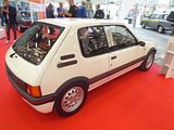 Mindful of the success of the Golf GTi, in the class above, and how a small car with good handling could take more power, as the Mini Cooper had proved, Peugeot came up with the GTi in early 1984. The first models had a 1.6 litre XU5J engine, producing 105 PS, which was uprated in 1987 with a cylinder head with larger valves thus becoming XU5JA, which took the power output up to 115 bhp. Visually the car retained the good looks of the 3 door version of the regular models, but it featured plastic wheel arch extensions and trim, beefier front and rear bumper valances and judicious use of red badging and trim. The shell also underwent some minor changes, including larger wheel arches (to suit the larger wheels , and the suspension was redesigned and sat lower on the GTI with stiffer springs, different wishbones and a drop-linked anti-roll bar. Red was a dominant colour inside. The car was an instant hit. At the end of 1986, Peugeot followed up with a more potent model, the 1.9 GTi, whose XU9JA engine produced 128 PS. Internally the engine of this car and the 1.6 model are very similar, the main differences on 1.9 litre versions being the longer stroke, oil cooler, and some parts of the fuel injection system. The shorter stroke 1.6 litre engine is famed for being revvy and eager, while the 1.9 litre feels lazier and torquier. Outside the engine bay the main differences between the 1.6 GTi and the 1.9 GTi are half-leather seats on the 1.9 GTi vs. cloth seats and disc brakes all-round (1.9 GTi) vs. discs at the front and drum brakes at the back; as well as the 14-inch Speedline SL201 wheels on the 1.6 GTi vs. 15 inch Speedline SL299 alloys on the 1.9 GTi. The 205 is still often treated as a benchmark in group car tests of the newest GTI models or equivalent. Peugeot itself has never truly recreated this success in future GTI models, although they came very close with the highly regarded GTI-6 variant of the Peugeot 306.